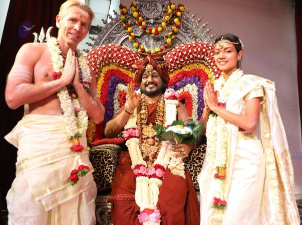 HDH Bhagavan Sri Nithyananda Paramashivam blessing the wed couples