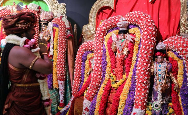 The Meenakshi Sundareshwara Thirukalyanam originates in the ancient city of Madurai, where Lord Shiva Himself came down as Sundareshwara to marry the Queen, Meenakshi Devi.