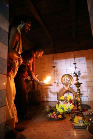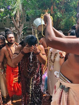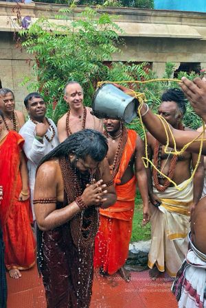 Today also celebrated the 10th day of Chithirai Brahmotsavam, Meenakshi Thirukalyanam, celebrating Pradosham in sanghas around the world and on this day.