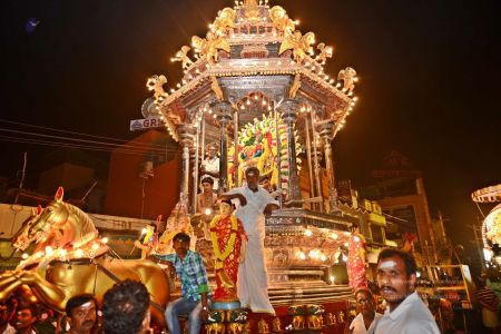 Devotees at the Panchamurti Procession of the Annamalaiyar Temple in Thiruvannamalai