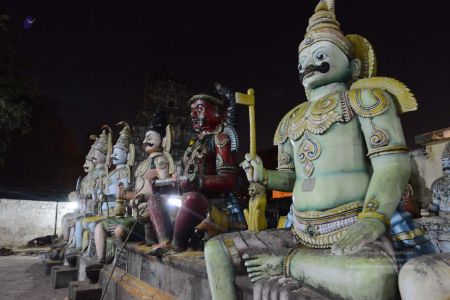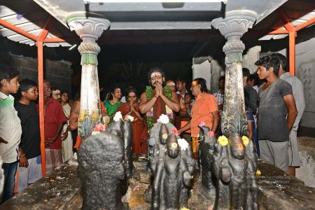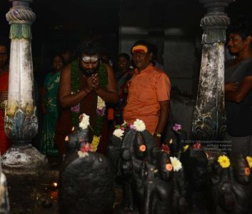 His Divine Holiness with the Navagrahas at the Mariamman Temple in Thiruvannamalai