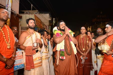 Bhagavan Sri Nithyananda Paramashivam took part in the Panchamurti Procession of the Annamalaiyar Temple in Thiruvannamalai and then proceeded to perform Girivalam - a walk around the sacred hill of Arunachala.