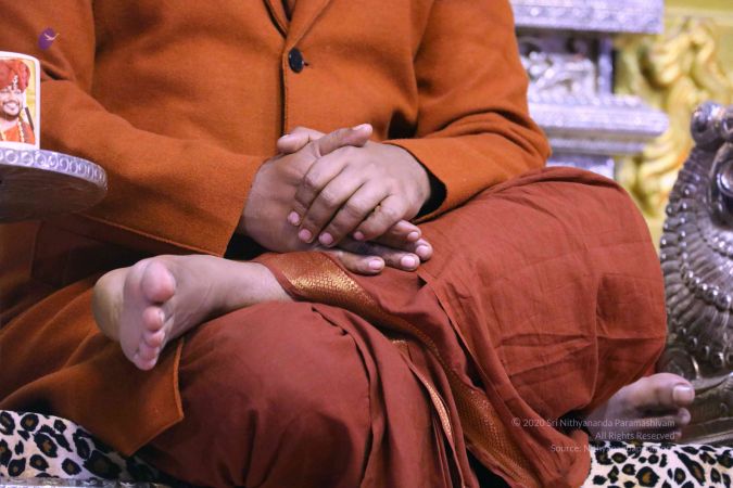 I welcome you all with My love and respects. I welcome all the Devotees, Disciples, Samajis, Satsangis, Sri Mahants, Mahants, Thanedar, Kotharis, Visitors, Viewers, everyone sitting with us all over the world, Nithya Satsangis, Sarvajnapeetha Yajamans, everyone sitting with us all over the world, through Nithyananda TV and 2-way Video Conferencing. I welcome every one of you with My love and respects.