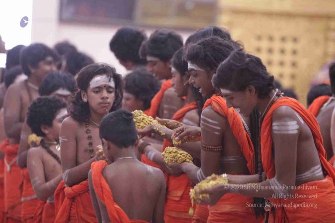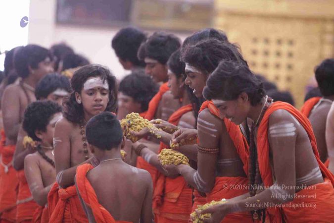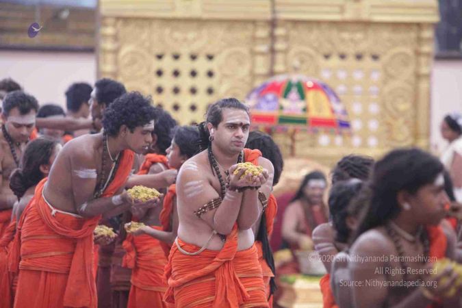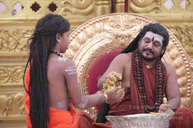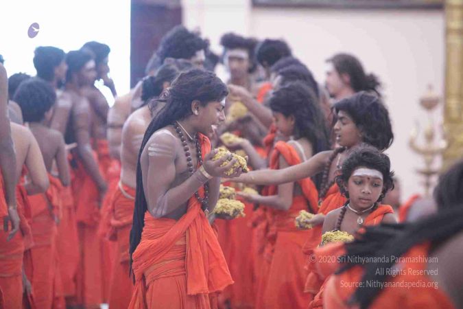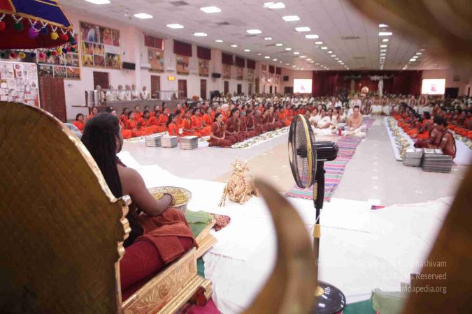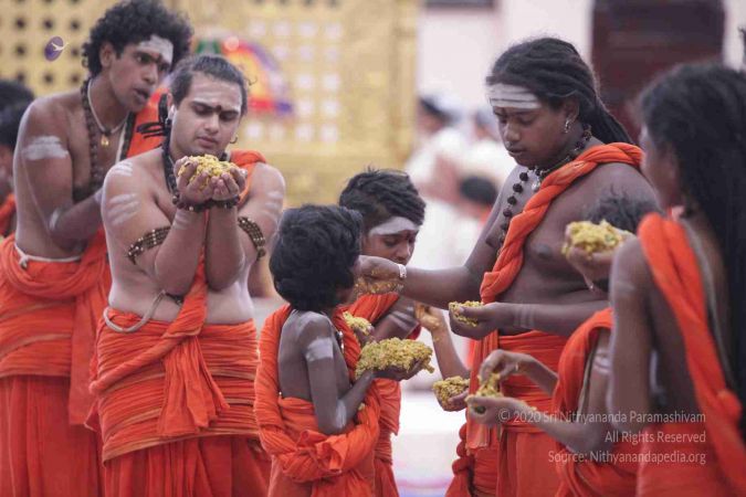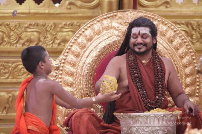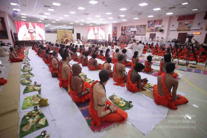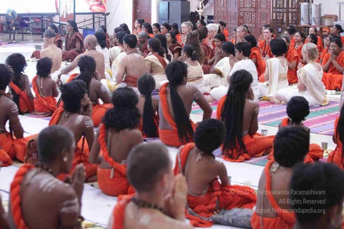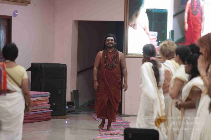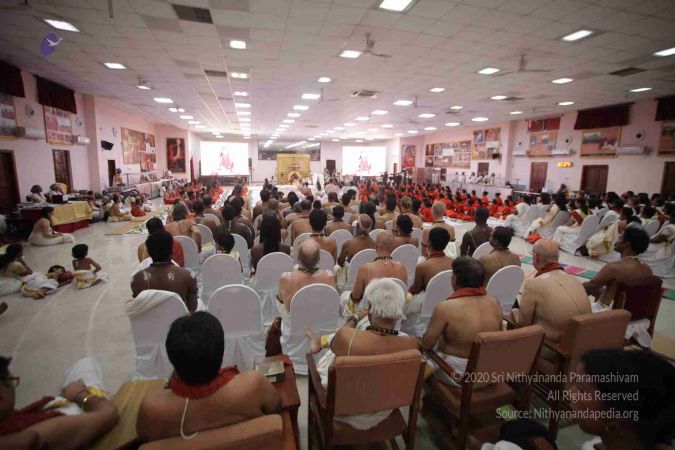 I welcome all of you with My love and respects. I welcome all the Sarvajna Peeta Yajamans, Sri Mahants, Mahants, Thanedar, Kothari, everyone, sitting with us all over the world, through Nithyananda TV, 2-way Video Conferencing, Kalki TV, YouTube Live, having Nayana Deeksha. Cities sitting with us….a long list, so I welcome all of you with My love and respects.