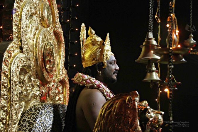 People tell me, you could have protected us during the attack. Fool, you think I can’t? I wanted you to get trained to wage these wars for Hinduism. Whoever is able to wage let them stand, let them stay back, others STEP BACK. If you can you can stay back, others step back. It is Sadashiva Sena, the army of Nagas, shaastra in the right hand, shastra in the left hand... Jnana in one hand, Jnanakhadga in the other hand.