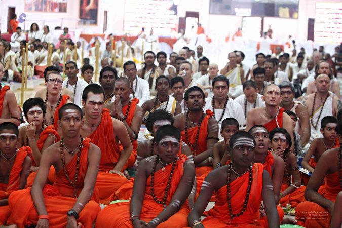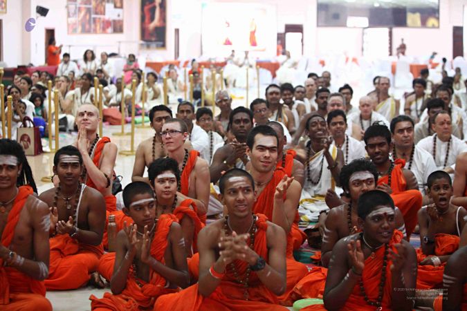 Delegates, Adheenavasis and Sanyasi preparing for Guru Puja.