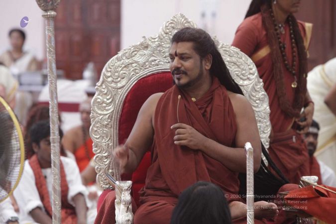 HDH Nithyananda Paramashivam sitting on Simhasana