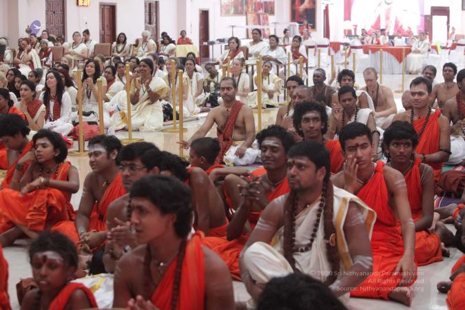 Balasanths and delegates enjoying the presence of HDH Nithyananda Paramashivam during the morning satsang