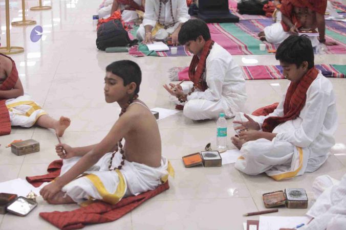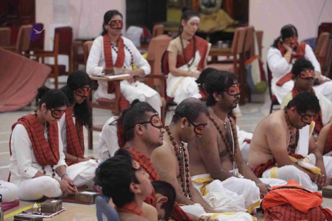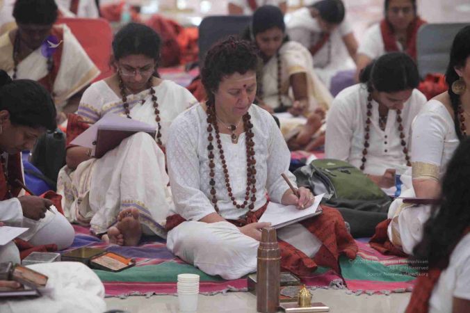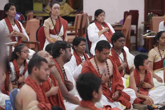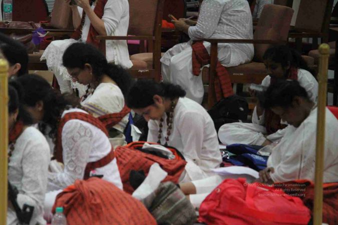 Adheenavasis and Inner Awakening Convention delegates setting up their Pooja Kits to offer their worship at the Lotus Feet of HDH Bhagavan Sri Nithyananda Paramashivam