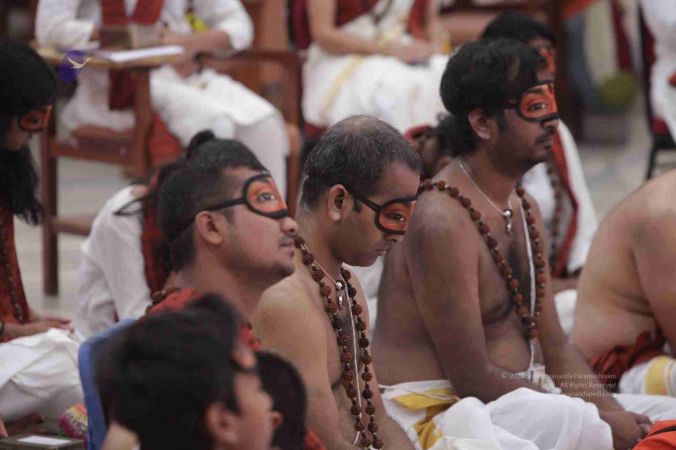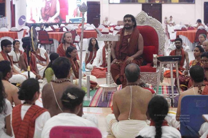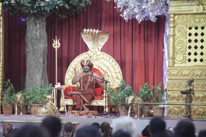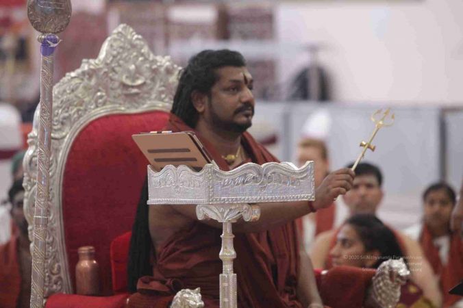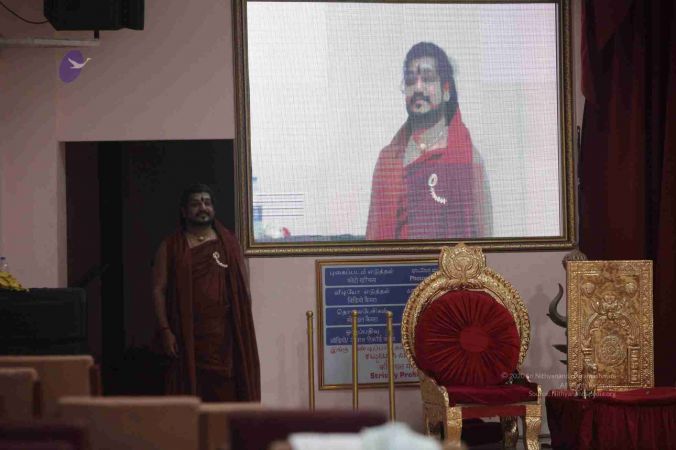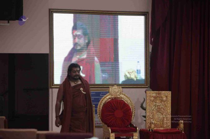 I welcome all of you with My love and respects. I welcome all the Sarvajna Peetha Yajamans, Nithya Satsangis, Sri Mahants, Mahants, Kotharis, Thanedars, devotees, disciples, visitors, YouTube Subscribers, sitting with us through Nithyananda TV and Facebook Live on 100s of Aadheenavasis channels, YouTube Live and through 2-way Video Conferencing having Nayana Deeksha. I welcome all of you with My love and respects.