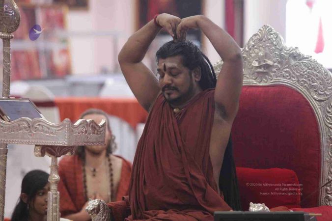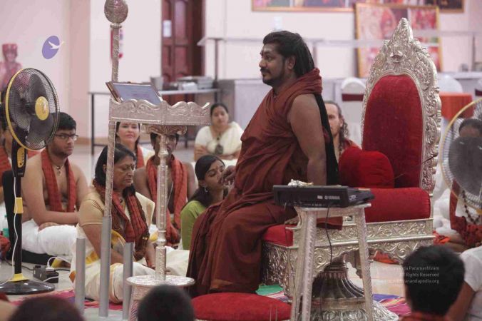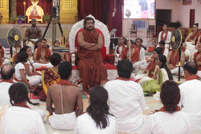 HDH Bhagavan Sri Nithyananda Paramashivam adorning the Simhasana to conduct Mandala Process