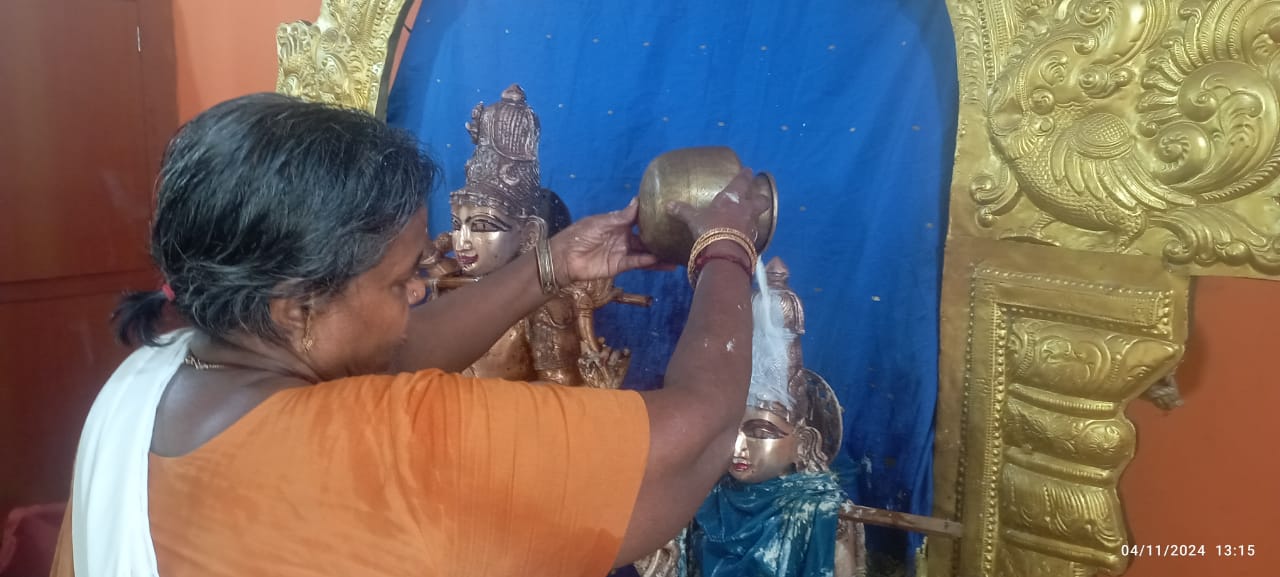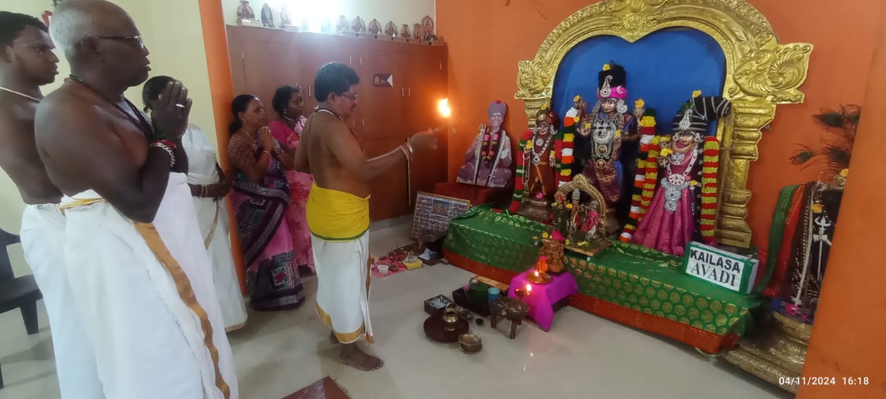 With the blessings of THE SUPREME PONTIFF OF HINDUISM (SPH), BHAGAVAN SRI NITHYANANDA PARAMASHIVAM — the ultimate manifestation, Paramavatara of Paramashiva — KAILASA Avadi Chennai, India, celebrated the daily revival of Sanatana Hindu Dharma on November 4, 2024. The day was dedicated to sacred services and rituals, centered around the Abishegam and alangaram ceremony performed as part of Nithyotsavam (Daily Rituals). This committed daily devotion, conducted with reverence and dedication, enables devotees to connect with the divine grace of THE SPH and manifest the state, space, powers, being and superconsciousness of Paramashiva. The event saw enthusiastic participation from 5 devotees and 5 volunteers, who collaboratively ensured the continuity of these essential Hindu rituals, reinforcing KAILASA's global mission of human consciousness awakening and revival of Hindu civilization.