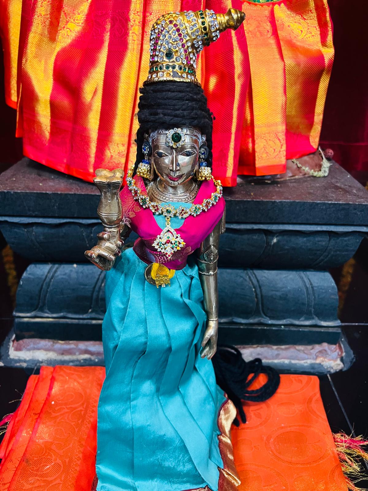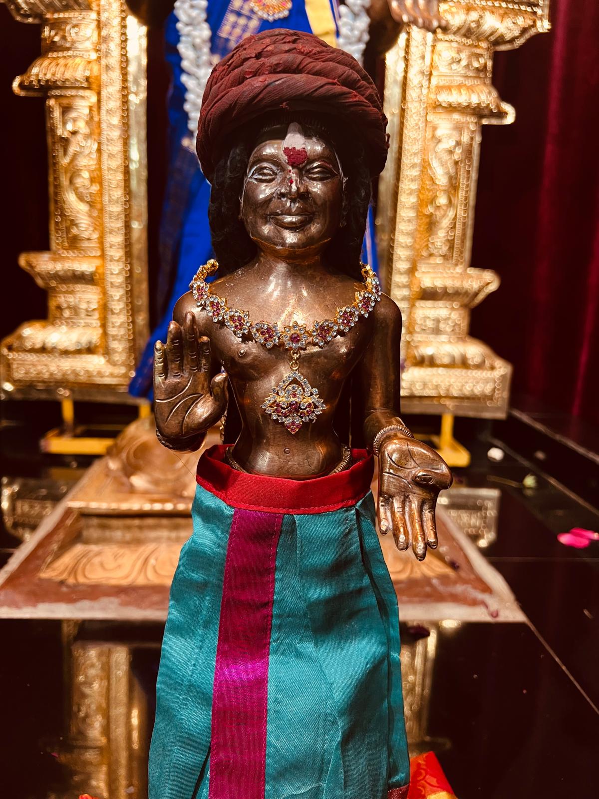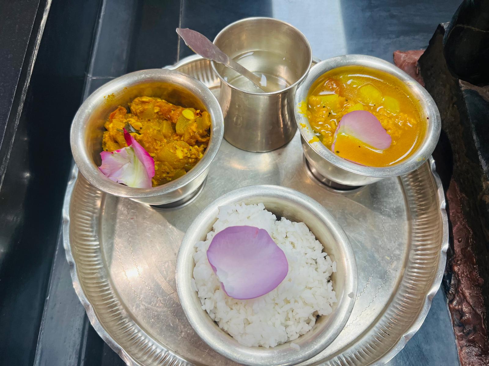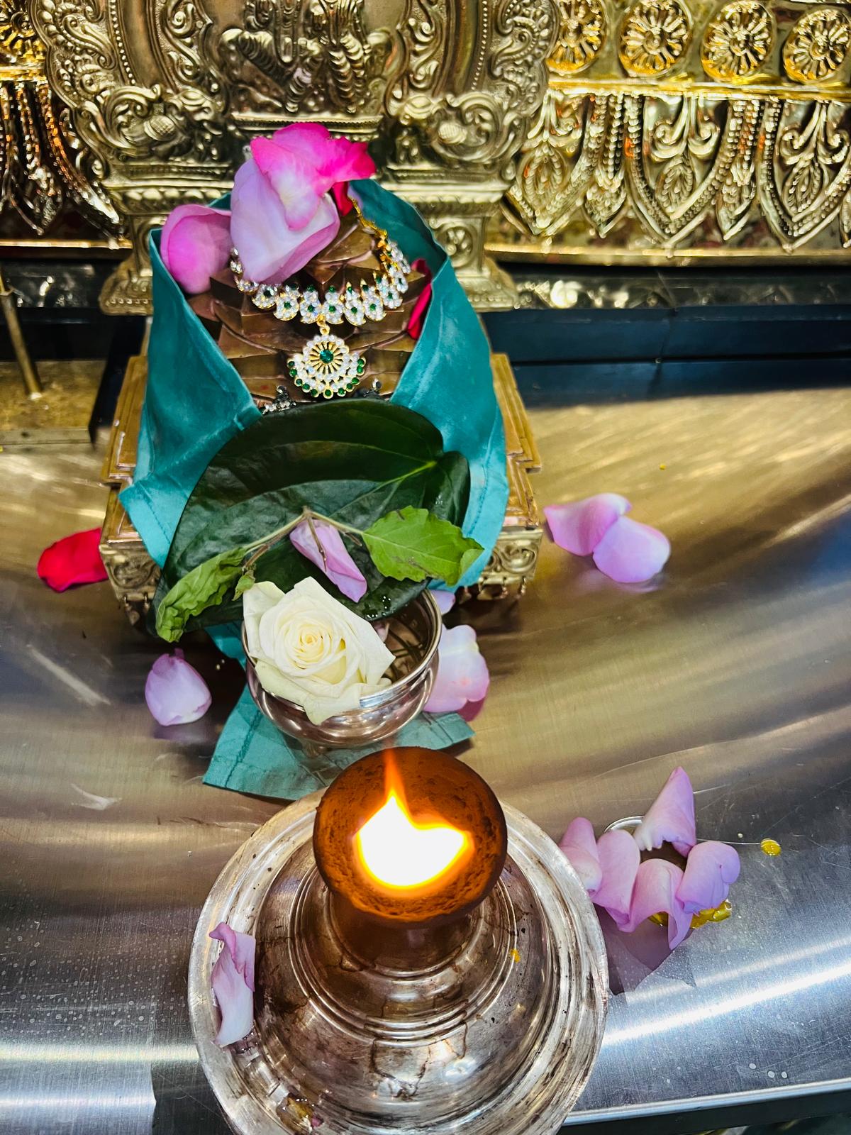 Following the awakening, Bhoga Murty Alankaram was meticulously performed, where sacred clothing and jewels were offered to SPH JGM HDH Bhagavan Sri Nithyananda Paramashivam, Devi, and the Shiva Meru. This was followed by a reverent Deity Procession welcoming the movable deities (Bhoga Murthy) into the main temple area for the day’s worship. Two dedicated volunteers contributed their service (seva) throughout the day, ensuring the smooth and reverent execution of these essential Hindu rites and upholding the highest standards of temple tradition.
