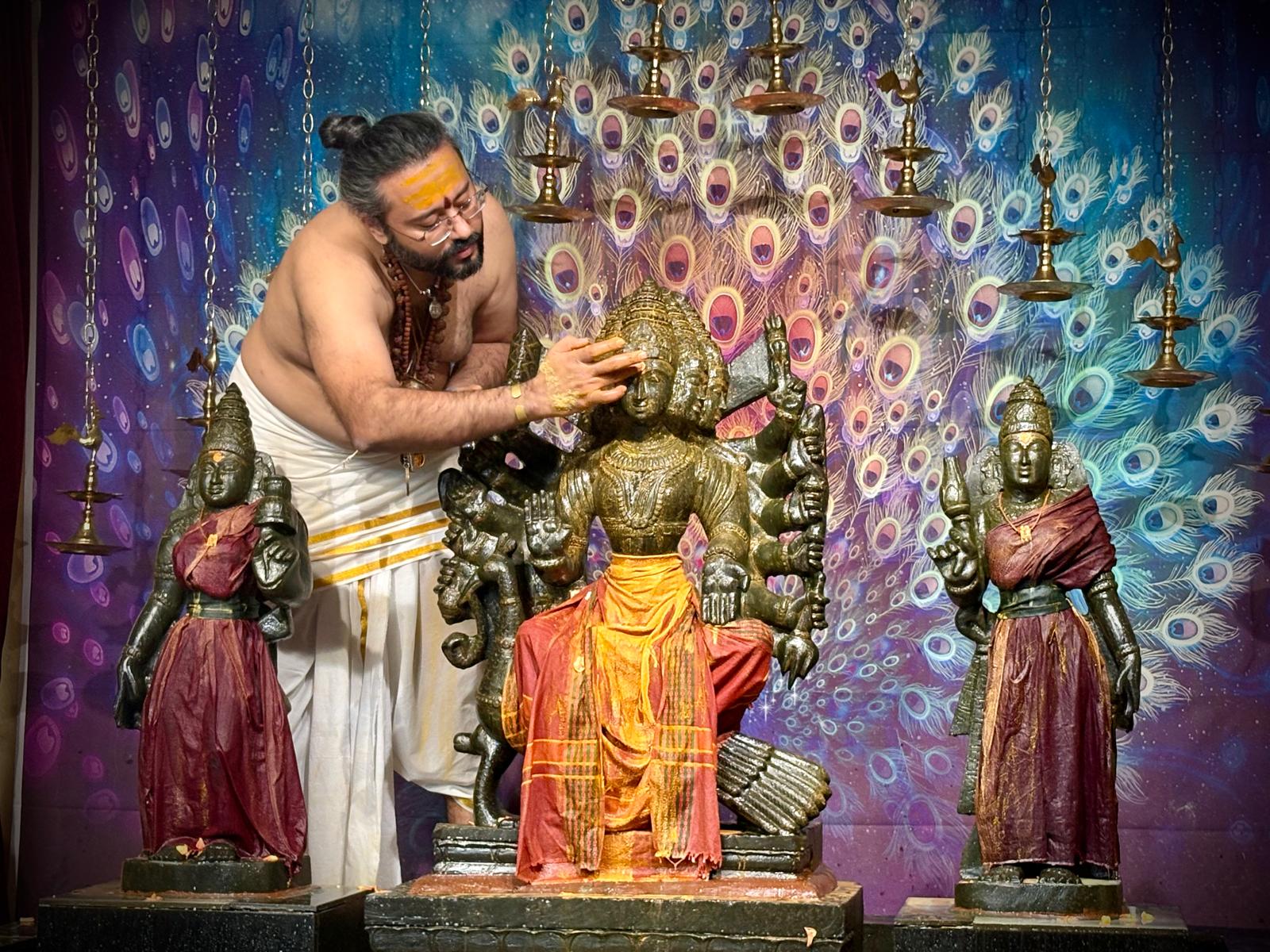 The highlight of Day 1 was the divine Ganesha and Subramanya Abhishekam. This sacred Hindu ritual involves bathing the deities with potent offerings, serving as a powerful spiritual technology gifted by THE SPH to enable devotees to connect with the state, space, powers, being, and superconsciousness of Paramashiva. Invoking Lord Subramanya, the embodiment of courage, wisdom, and the ultimate destroyer of negative forces, establishes the spiritual foundation for conquering internal and external obstacles throughout the festival cycle.