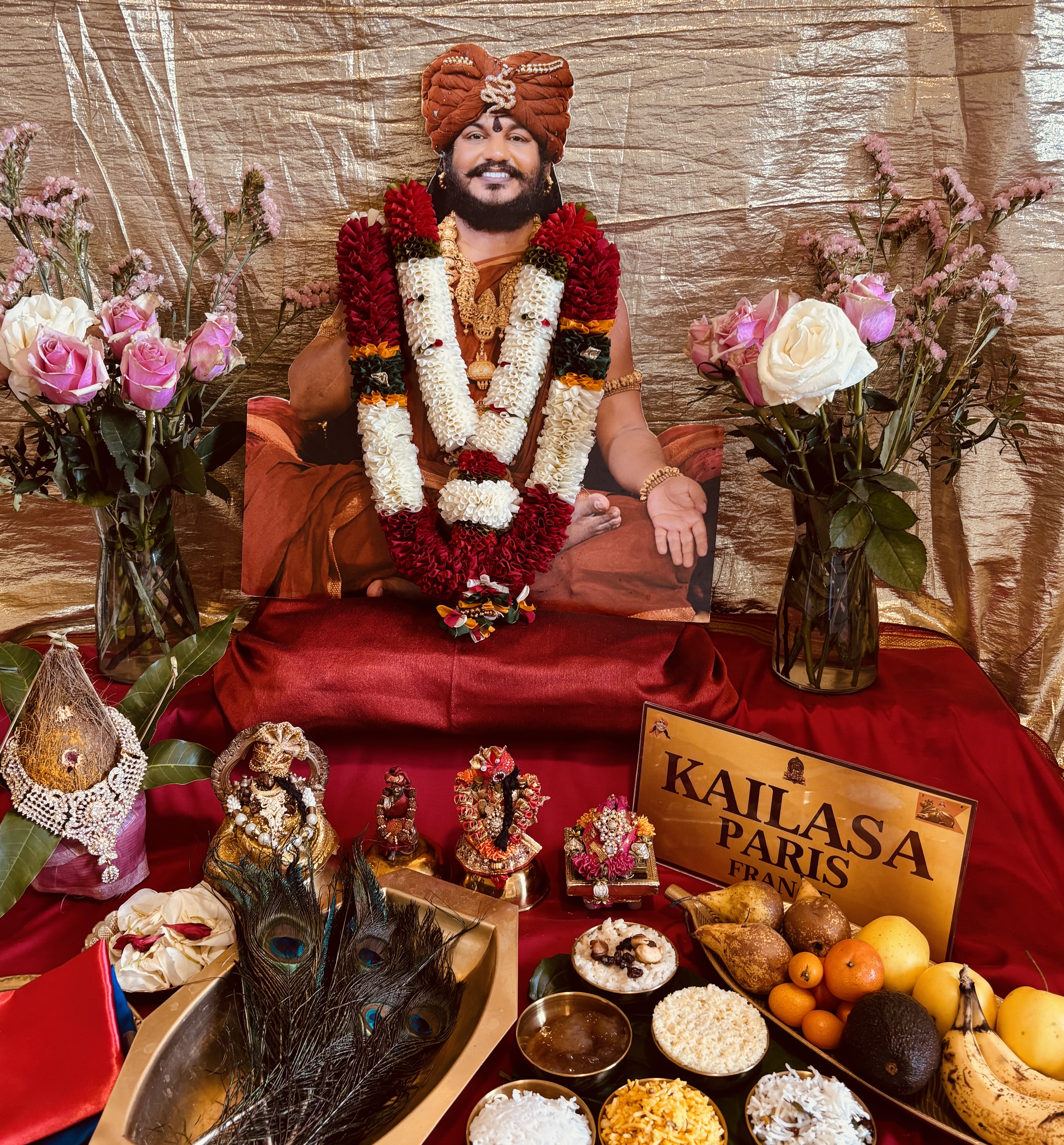 KAILASA Paris France was blessed to offer the Mandagappadi as the ceremonial opening for the celebrations of Goddess Raja Rajeshwari. This ritual signifies the formal invitation and hosting of the Divine, establishing a sacred space where devotees can experience the living presence of the Devi. As part of this traditional Hindu science of worship, the offering included the Patrikai, a special flag, various naivedyams, and fresh fruits, symbolizing the community's deep gratitude and devotion to the Divine Mother and THE SPH. The ritual was conducted with the intention of invoking the divine energies of the Devi to bless the region and its inhabitants with peace, prosperity, and spiritual awakening.