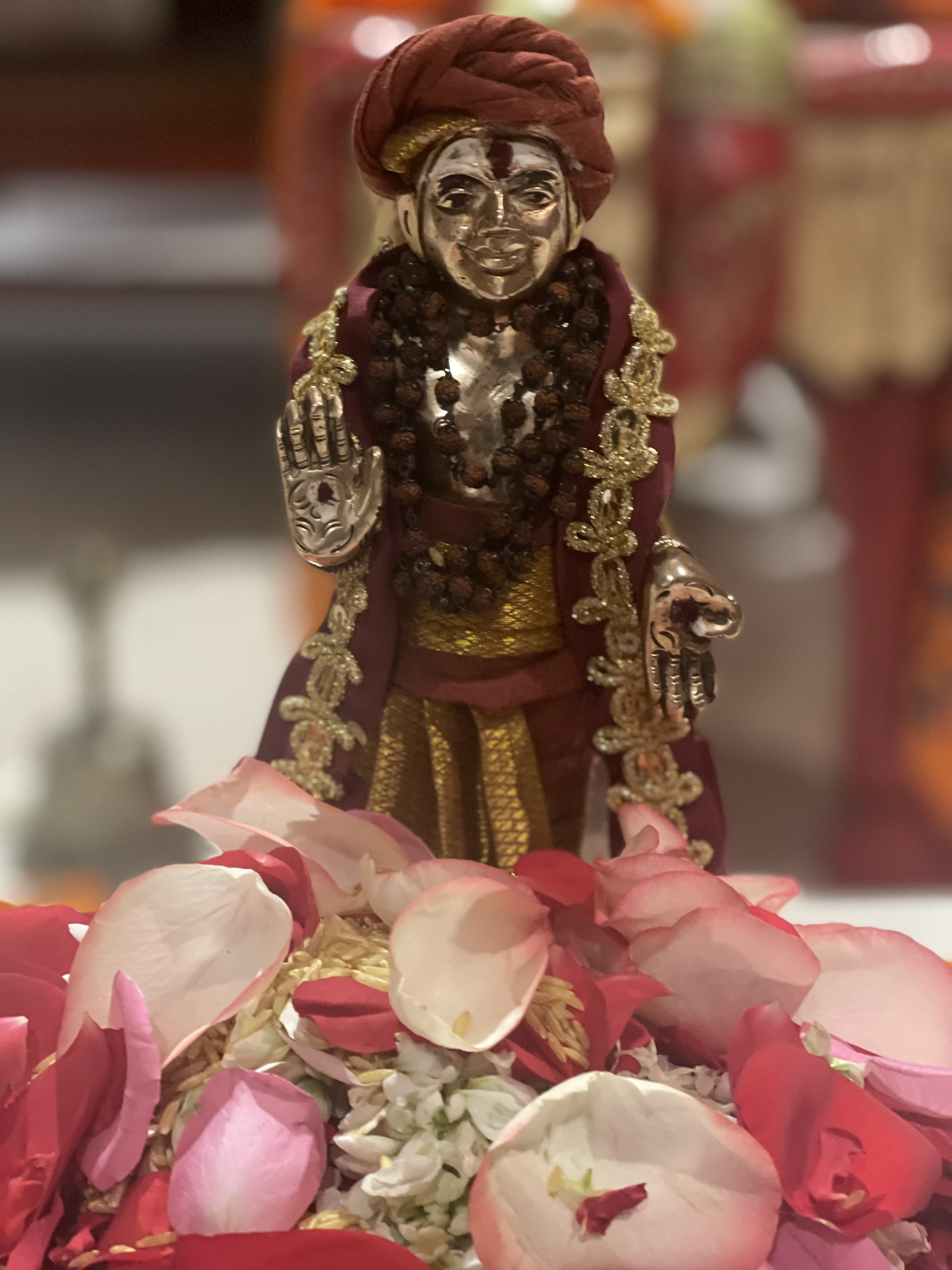The sacred Abhishekam ritual was conducted with profound devotion and strict adherence to ancient Hindu tradition, symbolizing the cleansing and purification of the inner space and the awakening of superconsciousness. Presided over by Acharya Ma Kalaadevi, the ceremony involved the ritualistic bathing of the deity, accompanied by specific Vedic mantras and Hindu rituals designed to invoke the divine grace of THE SPH. A core group of 6 dedicated individuals was present to perform the detailed steps of the ritual under the Acharya's guidance, ensuring the purity and authenticity of the spiritual technology being applied.
