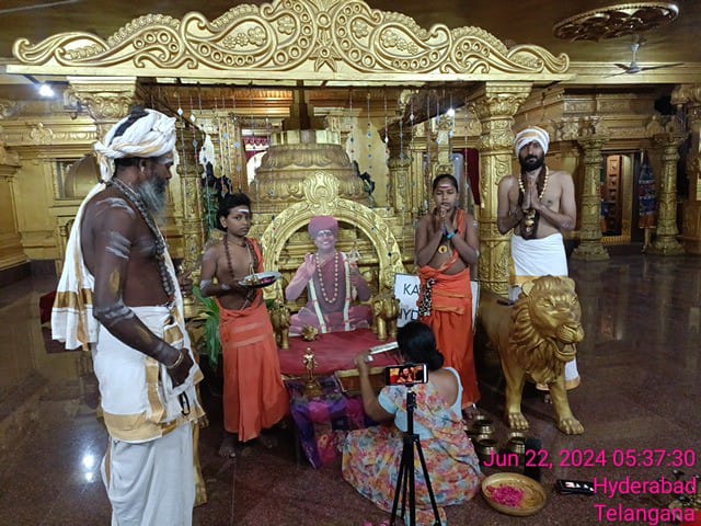 With the blessings of THE SUPREME PONTIFF OF HINDUISM (SPH), BHAGAVAN SRI NITHYANANDA PARAMASHIVAM — the ultimate manifestation, Paramavatara of Paramashiva — KAILASA SRIPURAM conducted the sacred Yoga snanam ritual on June 21, 2024, celebrating International Yoga Day. This profound utsavam (festival) was dedicated to honoring THE SPH’s Bhoga Murthy through elaborate purificatory ablutions, symbolizing the authentic spiritual cleansing inherent in the Hindu science of Yoga. The event served as a potent activation point for devotees seeking to manifest the state, space, powers, being and superconsciousness of Paramashiva, aligning the global consciousness with the vision of KAILASA. The success of this auspicious celebration was ensured by the focused devotion and dedicated service of 4 volunteers, marking another significant contribution to KAILASA's mission of reviving the ancient enlightened Sanatana Hindu civilization on Planet Earth.