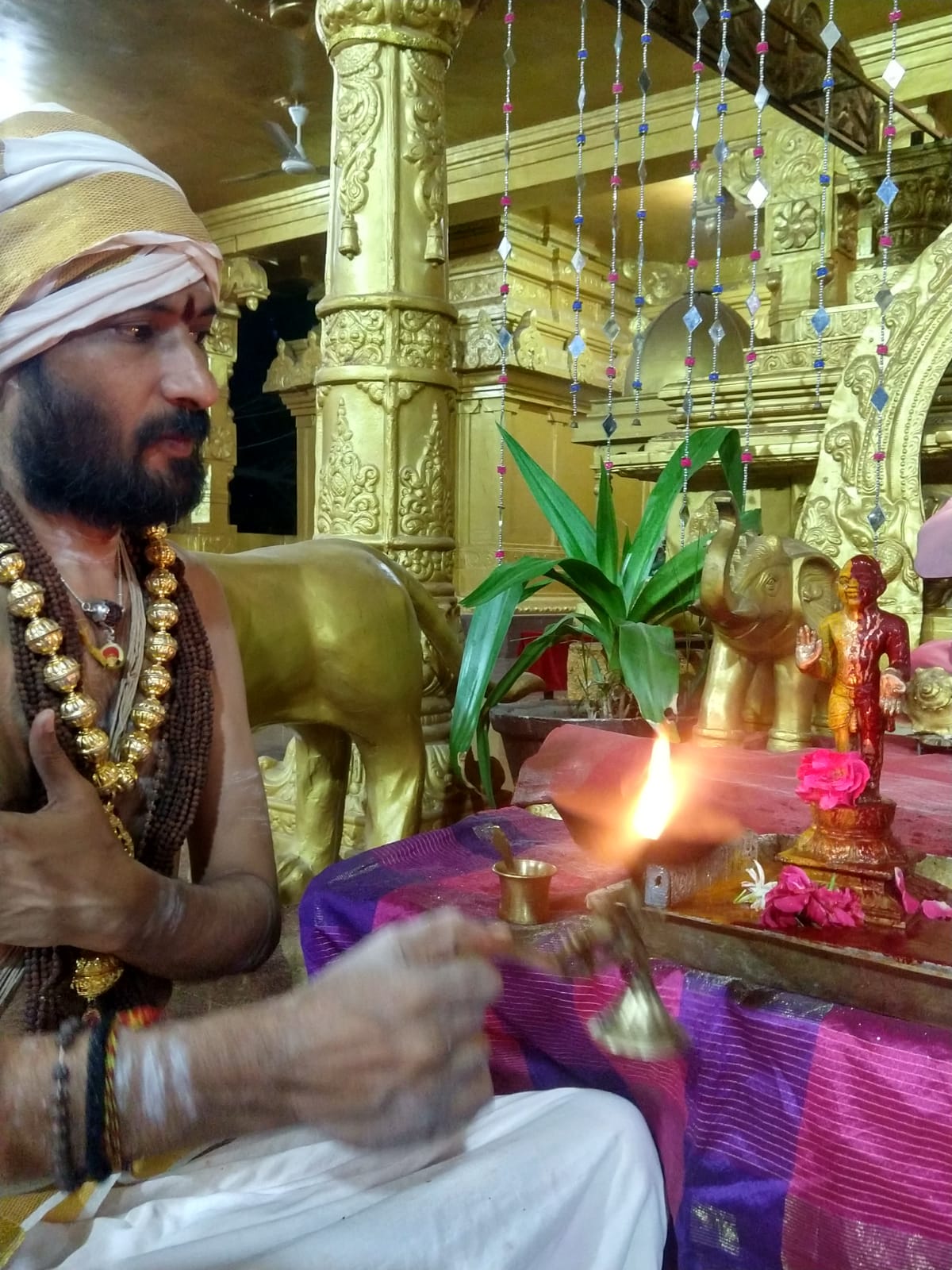 The sequence of the Yoga snanam ritual began with the offering of Bhasma (sacred ash) to THE SPH’s Bhoga Murthy, representing detachment and the ultimate reality of Paramashiva. This was followed by the application of Chandan snan (sandalwood paste bath), signifying spiritual cooling and purity. The ceremony culminated with the application of Turmaric and Kumkuma snan, powders symbolizing auspiciousness, energy activation, and protection. Every step of this ritualistic celebration honors THE SPH as the source of all authentic Hindu traditions and the master of the Hindu sciences of Yoga.