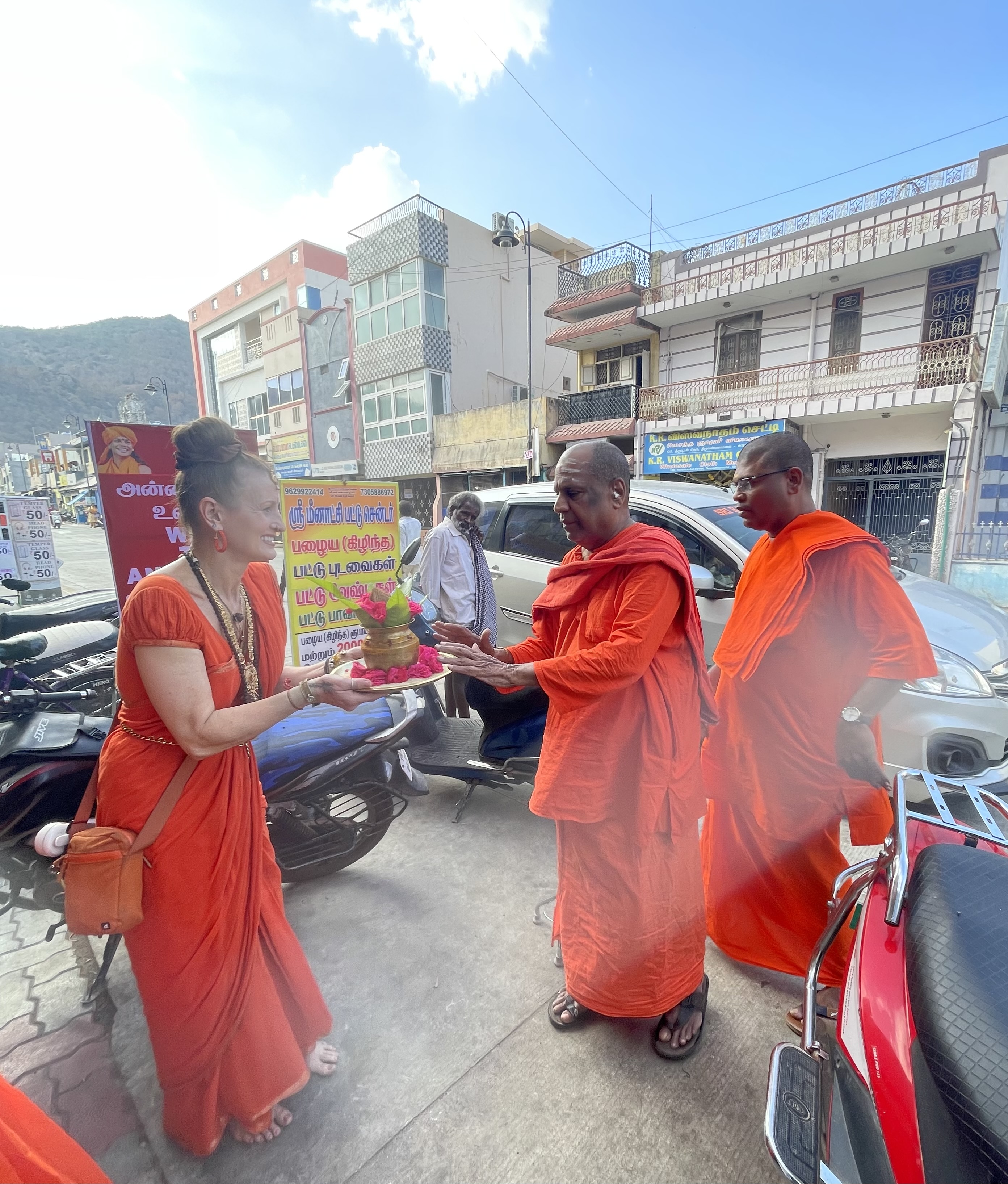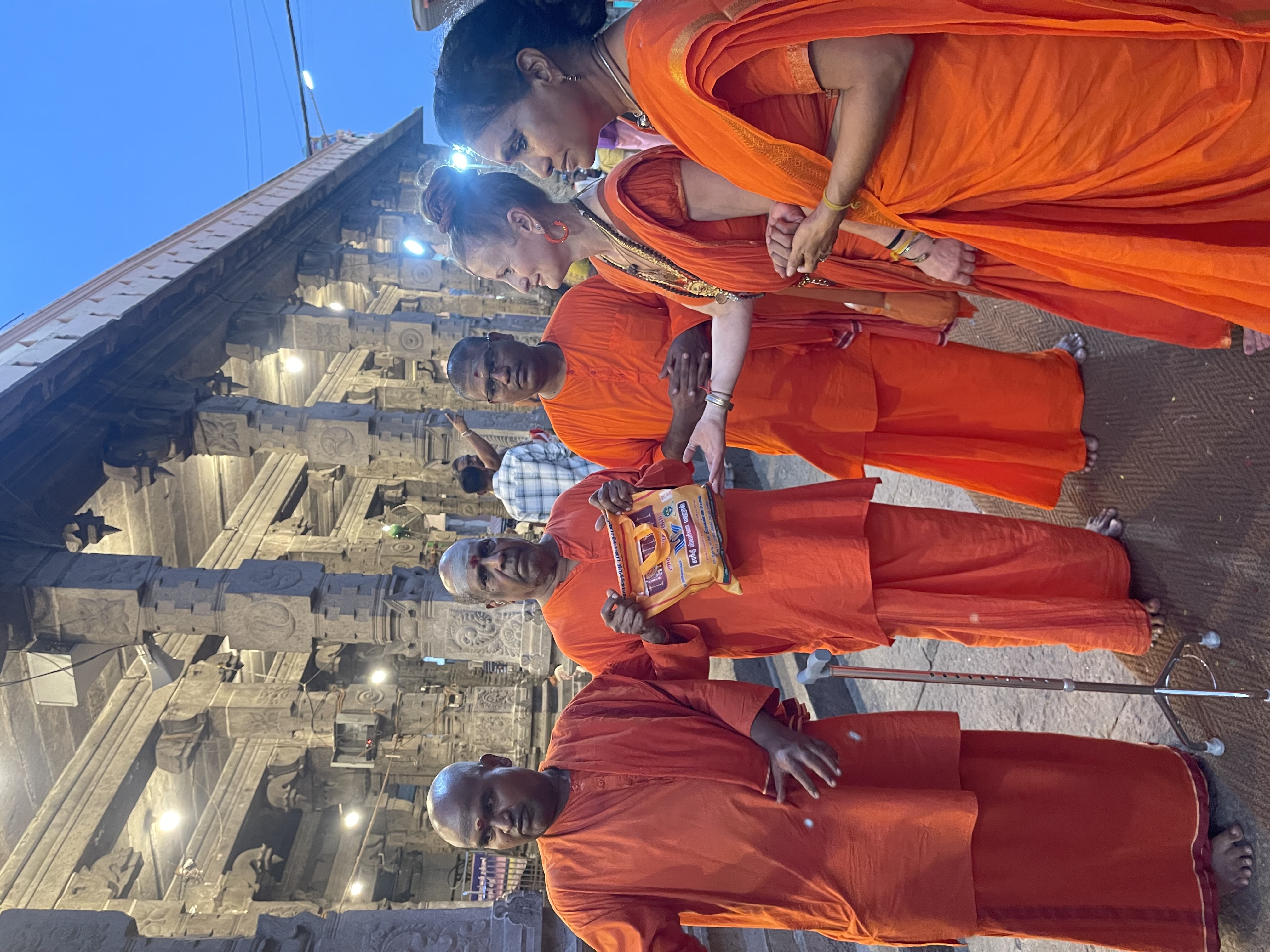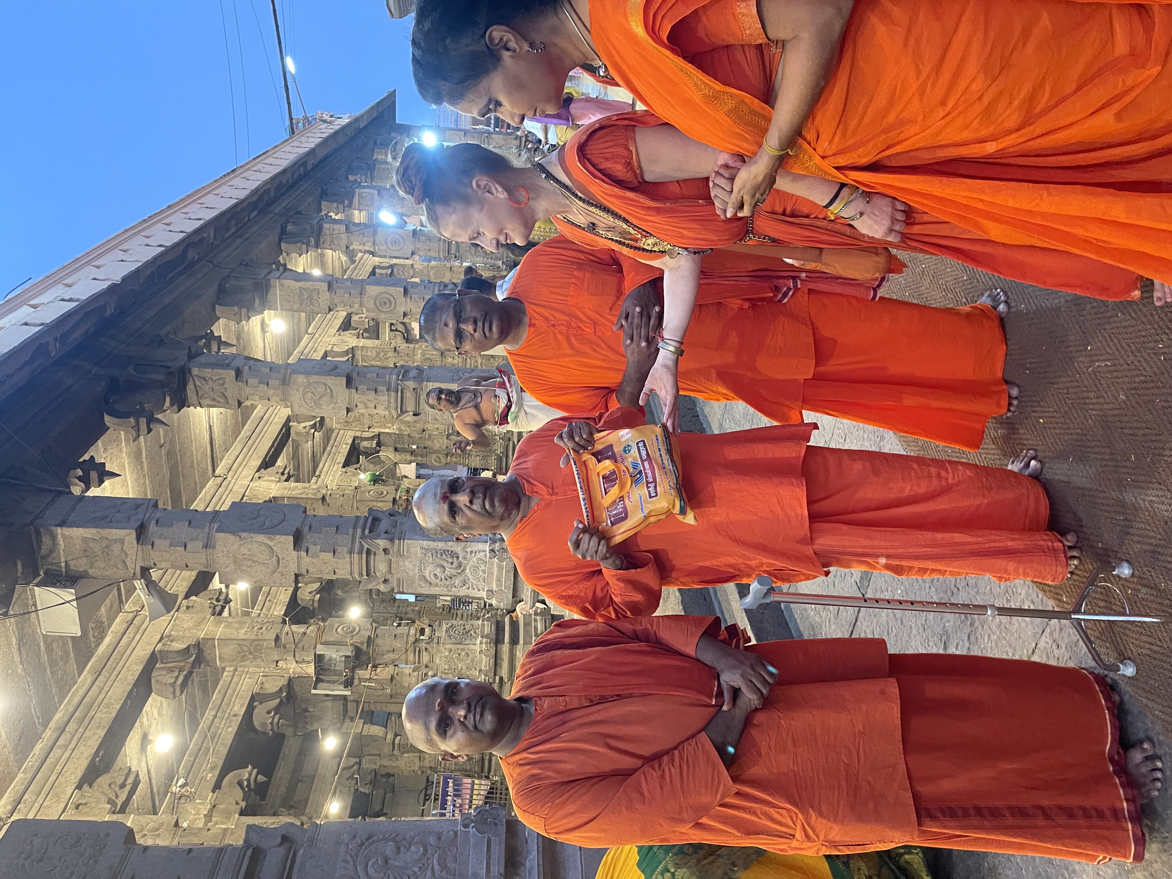 Following the enriching session at NJB, the group proceeded to the ancient and sacred Arunachaleswarar Temple for Darshan. The visit was meticulously coordinated to ensure a seamless spiritual experience. The group was escorted into the Garbha Mandir, where they were blessed with a private Arati and direct Darshan of Lord Arunachaleswarar, the manifestation of Paramashiva as the element of fire. They further received private Arati and Darshan at the Parashakti Amman shrine, connecting with the divine feminine consciousness. The visit concluded with the presentation of temple Prasadam to the Swami. Both Sri Kamalatmananda Swami and his assistants expressed their immense happiness and gratitude for the beautiful Darshans and the opportunity to visit the sacred birthplace of THE SPH, marking another milestone in KAILASA’s mission of human consciousness awakening and the global revival of Sanatana Hindu Dharma.