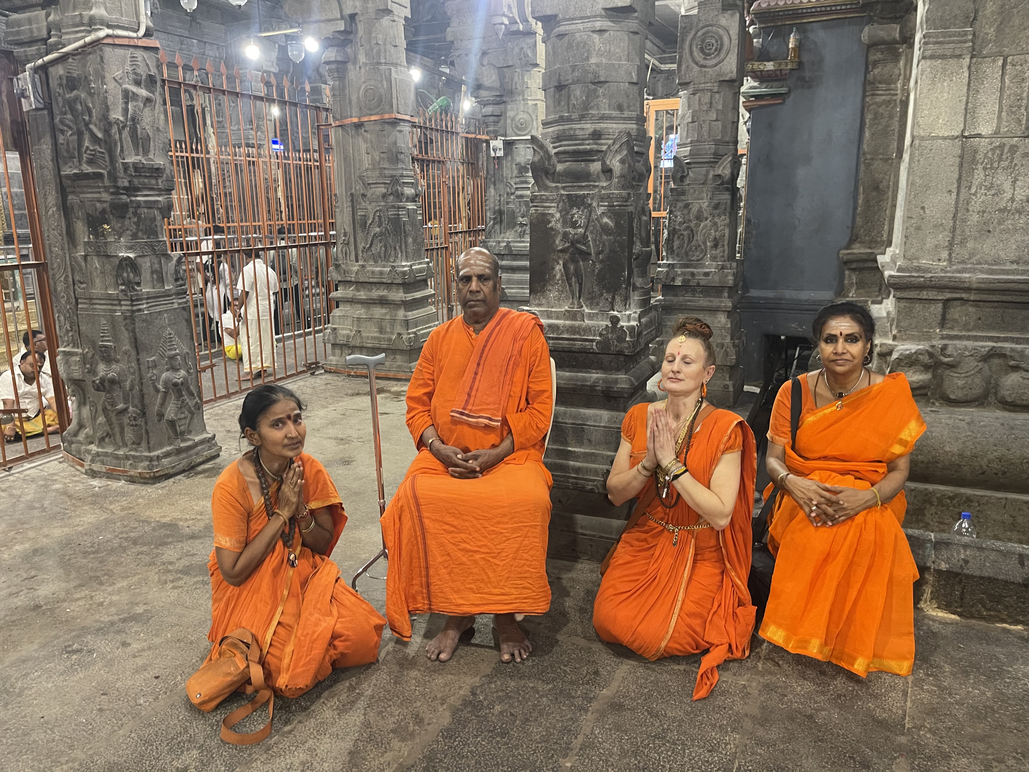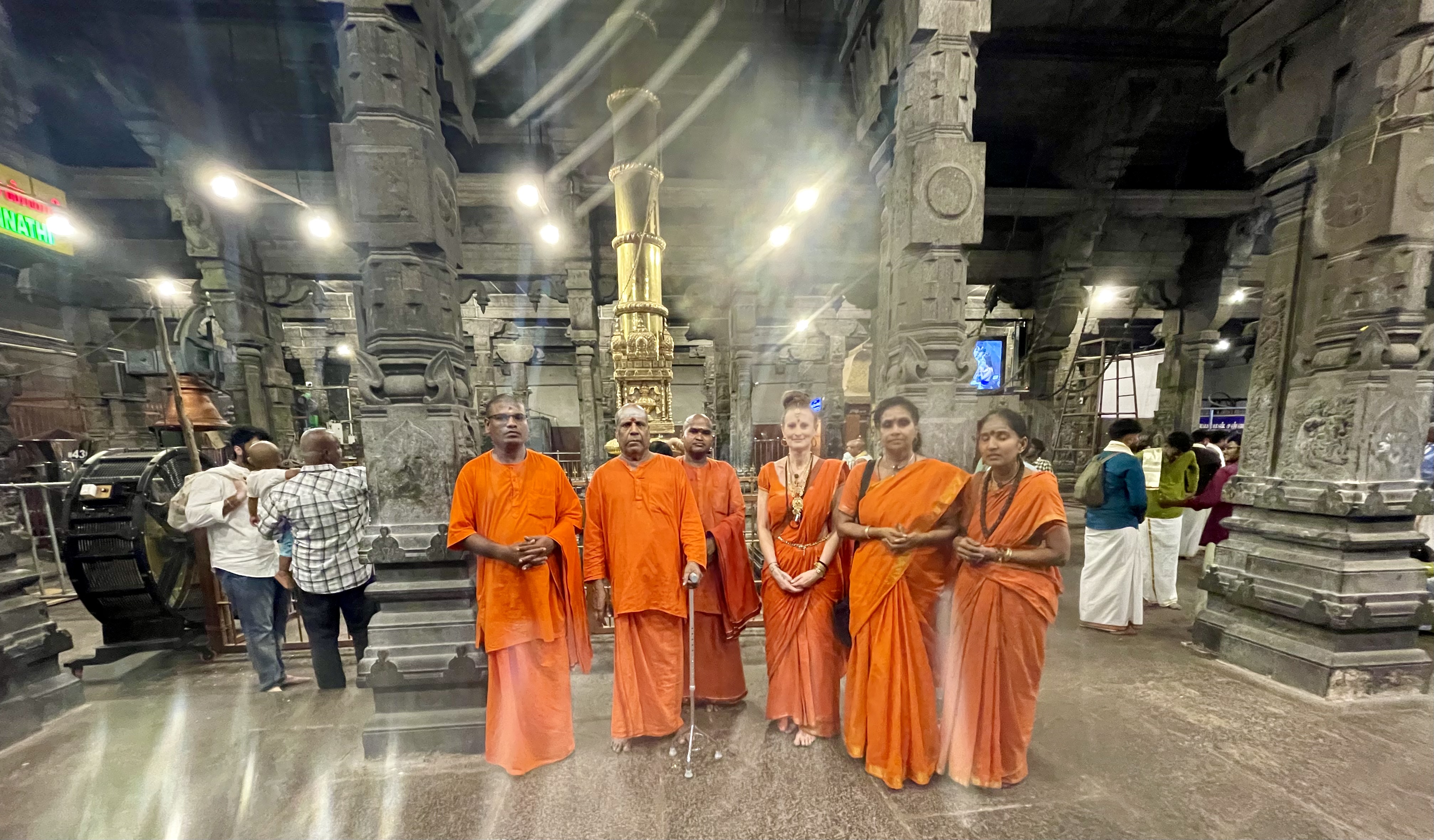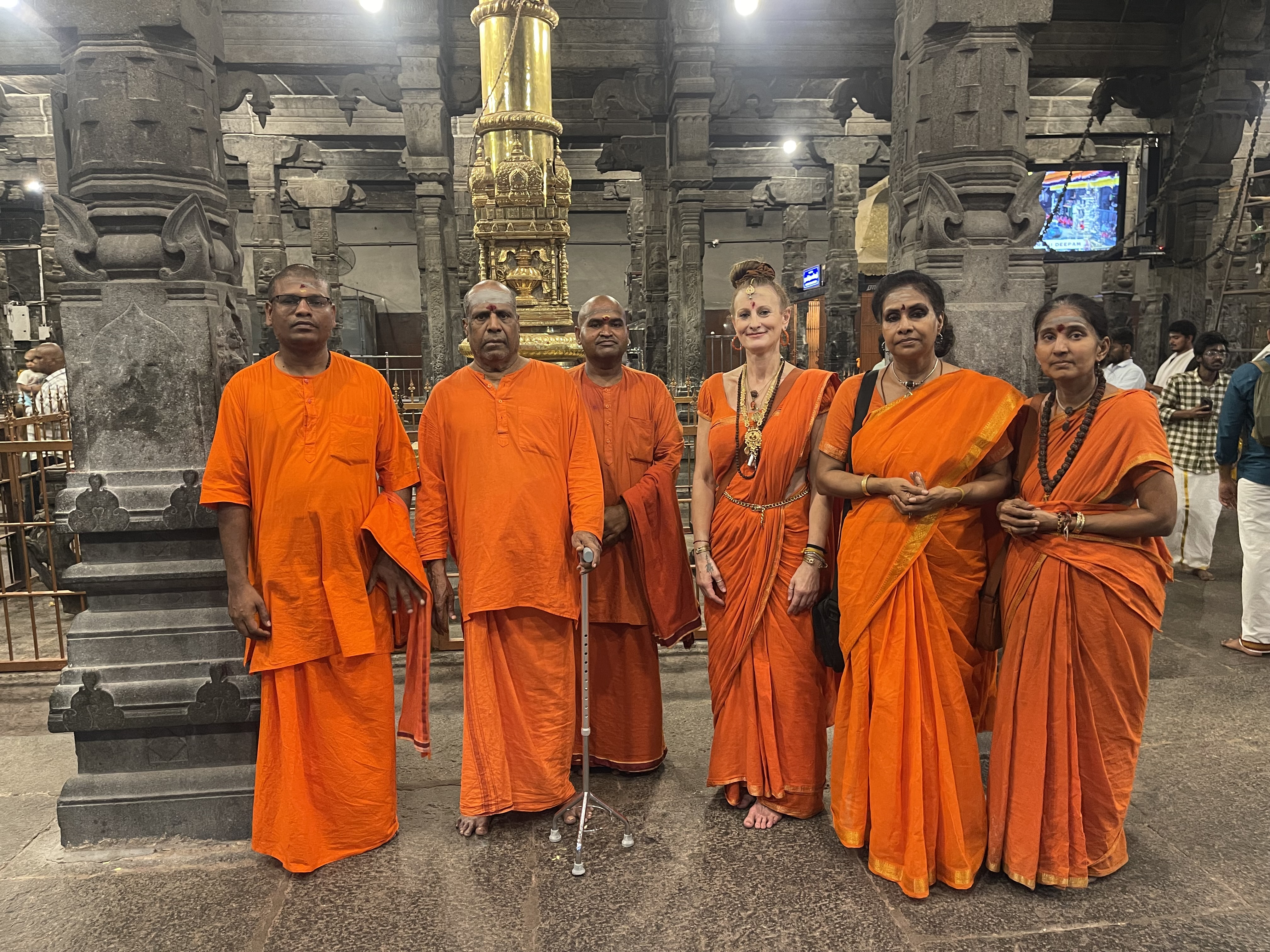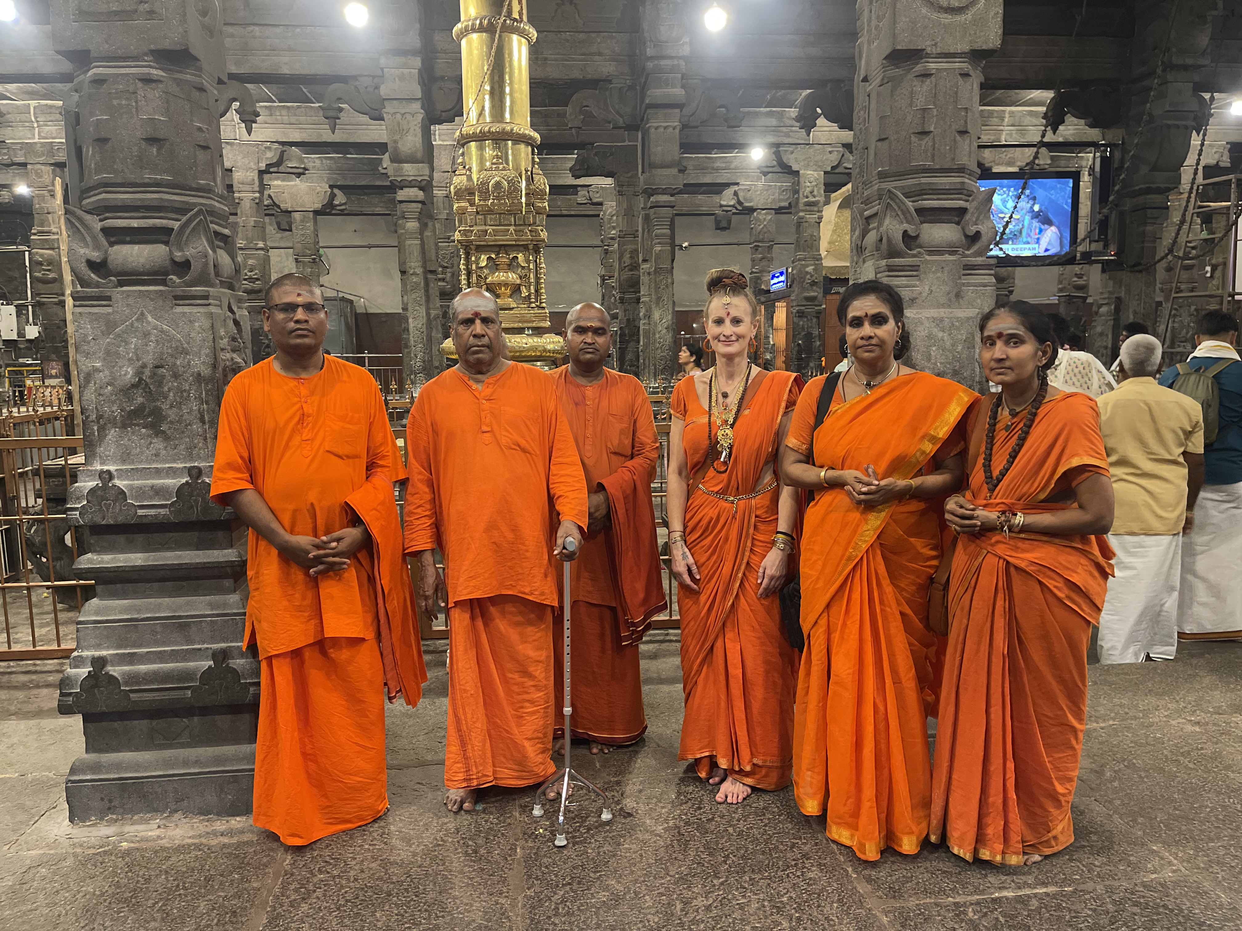 Following the enriching session at NJB, the group proceeded to the ancient and sacred Arunachaleswarar Temple for Darshan. The visit was meticulously coordinated to ensure a seamless spiritual experience. The group was escorted into the Garbha Mandir, where they were blessed with a private Arati and direct Darshan of Lord Arunachaleswarar, the manifestation of Paramashiva as the element of fire. They further received private Arati and Darshan at the Parashakti Amman shrine, connecting with the divine feminine consciousness. The visit concluded with the presentation of temple Prasadam to the Swami. Both Sri Kamalatmananda Swami and his assistants expressed their immense happiness and gratitude for the beautiful Darshans and the opportunity to visit the sacred birthplace of THE SPH, marking another milestone in KAILASA’s mission of human consciousness awakening and the global revival of Sanatana Hindu Dharma.
