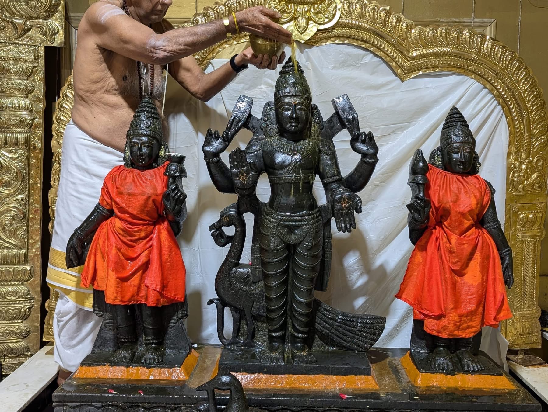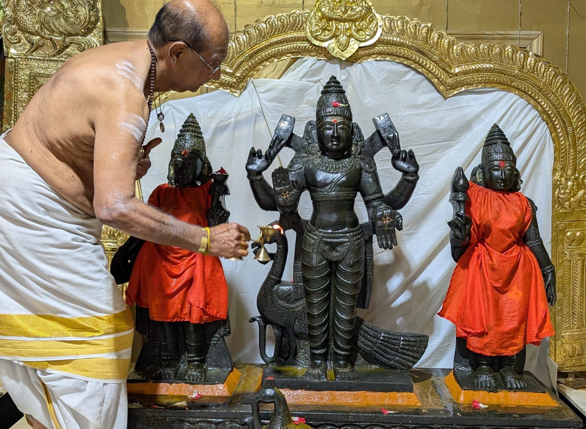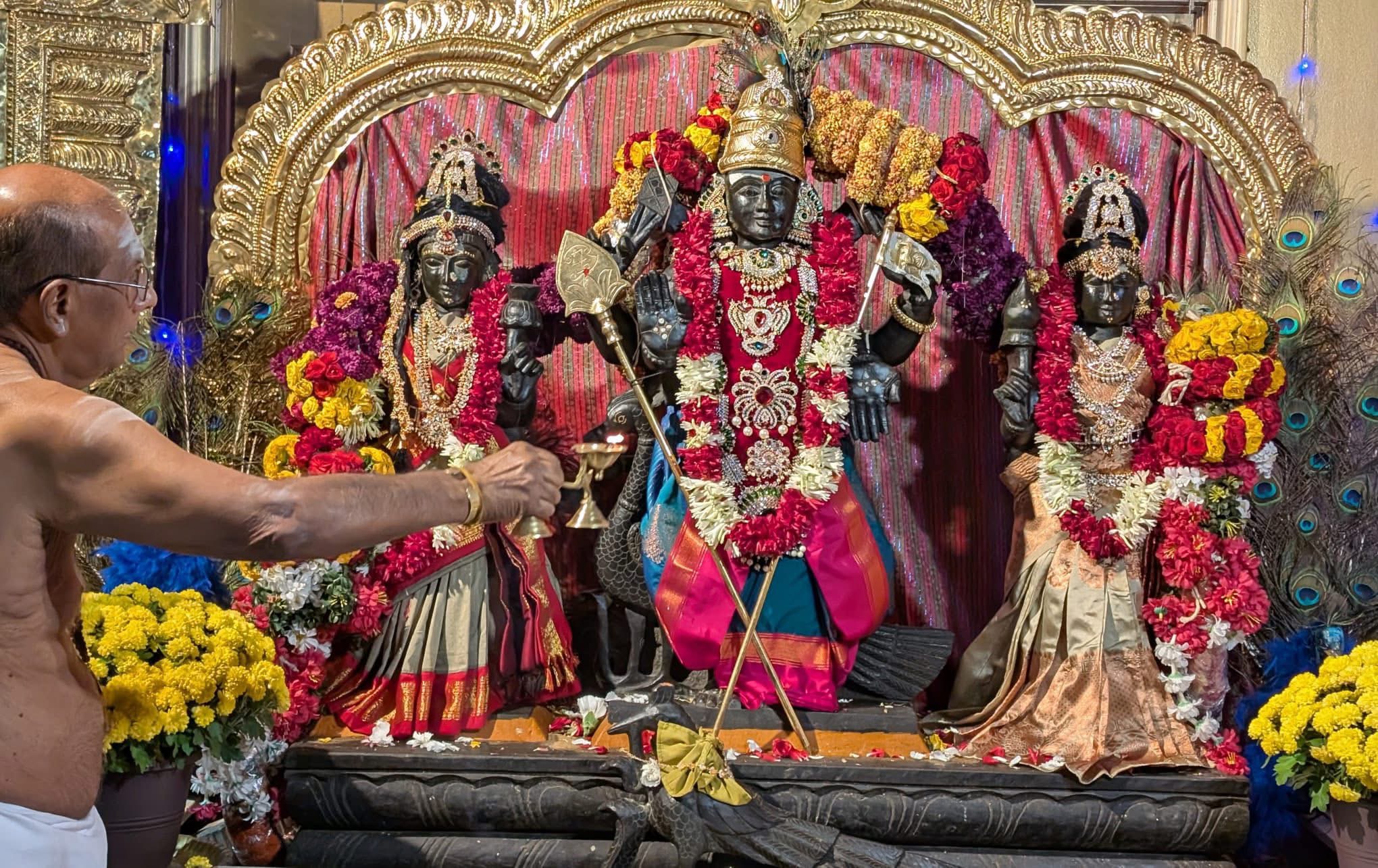 The sacred proceedings included authentic Hindu rituals aimed at honoring Lord Subrahmanya, the son of Paramashiva. Elaborate abhishekam (sacred bathing) was performed for the deity, followed by a profound deepa arathi (offering of light). These actions purify the space and the consciousness of the participants, allowing the divine energies to flow freely. The rituals serve not merely as ceremonial acts, but as powerful spiritual technologies gifted by THE SPH to help devotees experience deep transformation and manifest the shaktis/powers of Paramashiva in their lives.