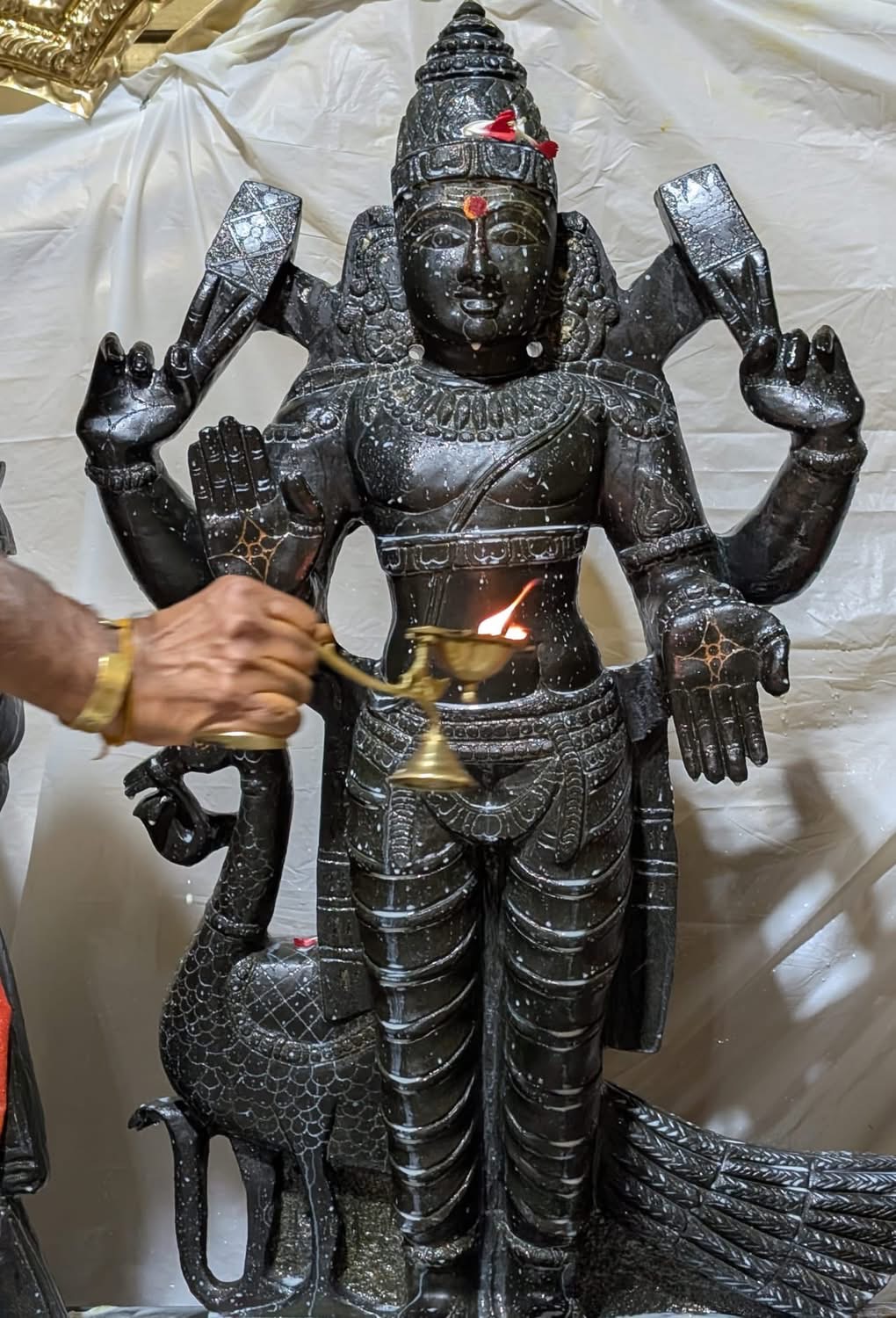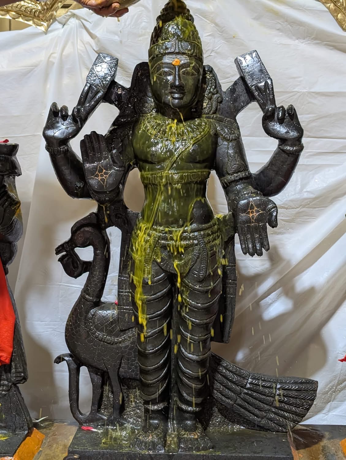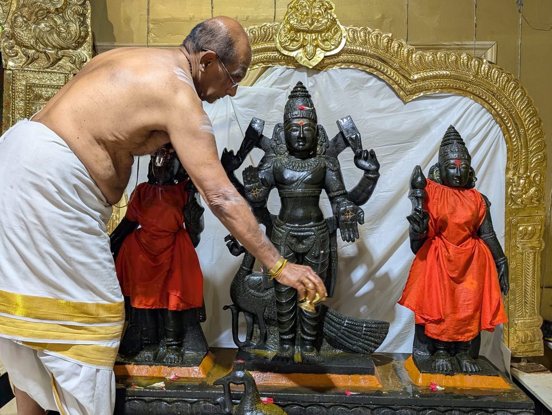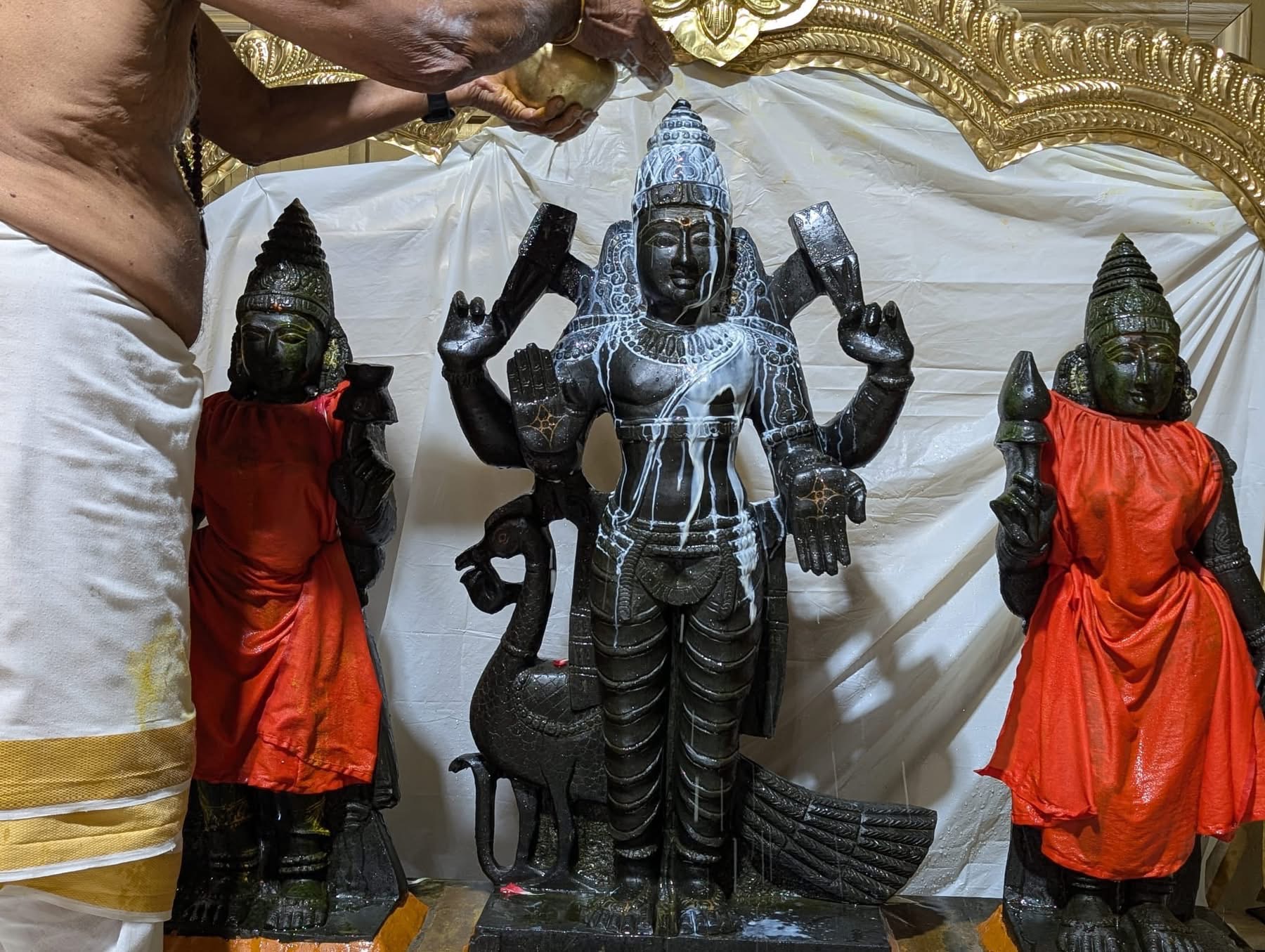 The sacred proceedings included authentic Hindu rituals aimed at honoring Lord Subrahmanya, the son of Paramashiva. Elaborate abhishekam (sacred bathing) was performed for the deity, followed by a profound deepa arathi (offering of light). These actions purify the space and the consciousness of the participants, allowing the divine energies to flow freely. The rituals serve not merely as ceremonial acts, but as powerful spiritual technologies gifted by THE SPH to help devotees experience deep transformation and manifest the shaktis/powers of Paramashiva in their lives.