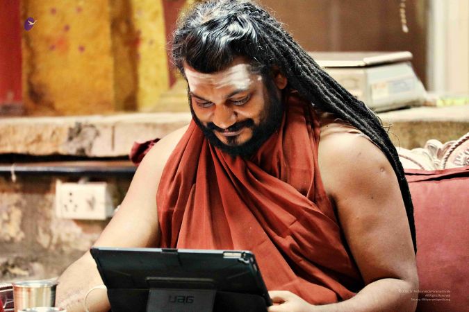 HDH Nithyananda Paramashivam addressing Q & A during courtyard session