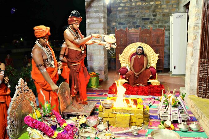 HDH Nithyananda Paramashivam gracing the Shiva Puja homa at Adi Kailash
