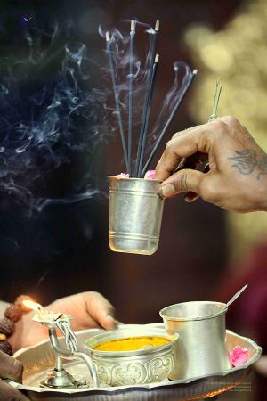 Offering of Dhoopa during Shiva Puja homa