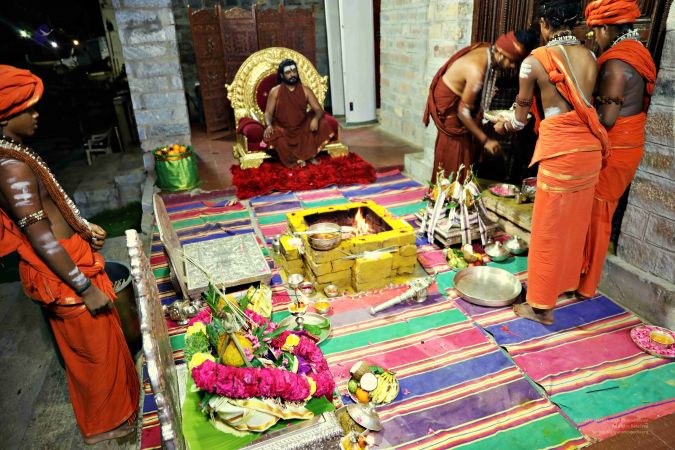 Offering of Deepa to kalasa's during Shiva Puja homa by Puja Acharya