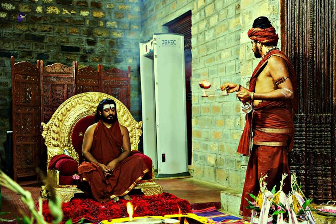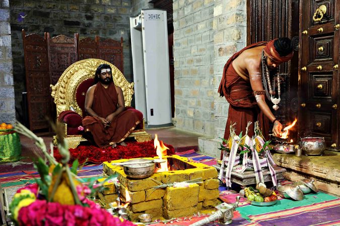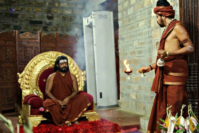 Temple Acharya offering Arathi to HDH Nithyananda Paramashivam