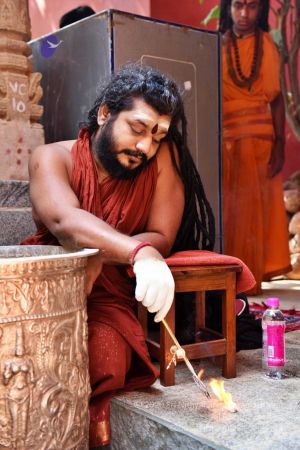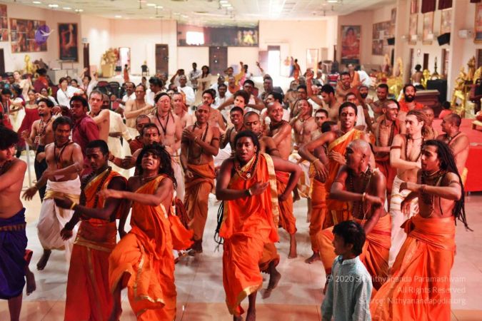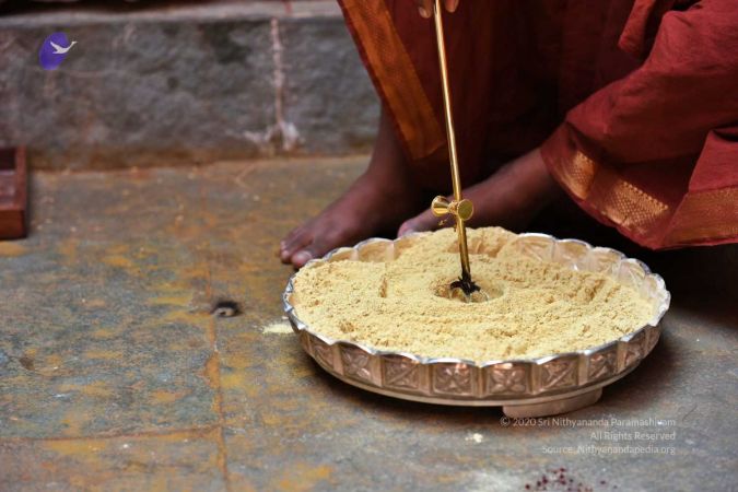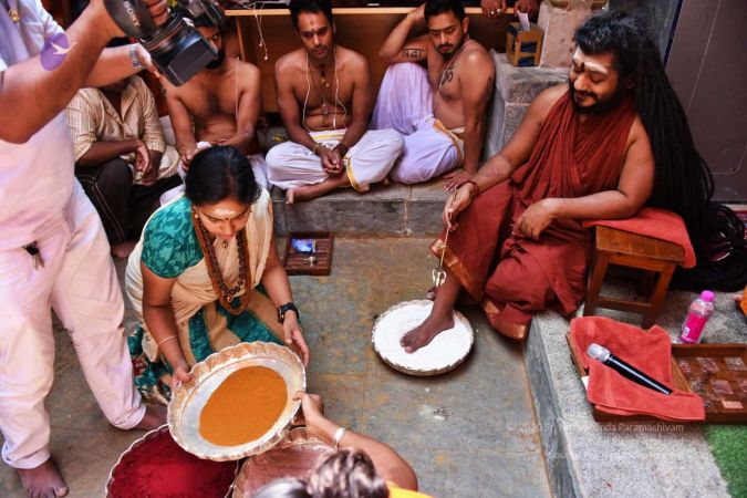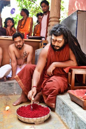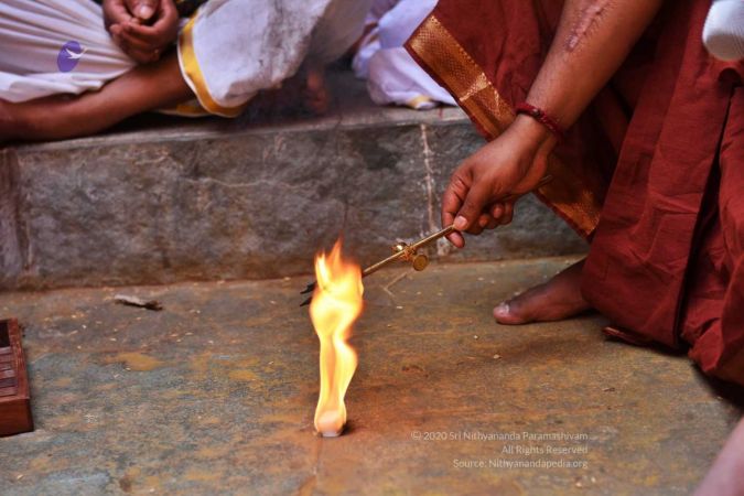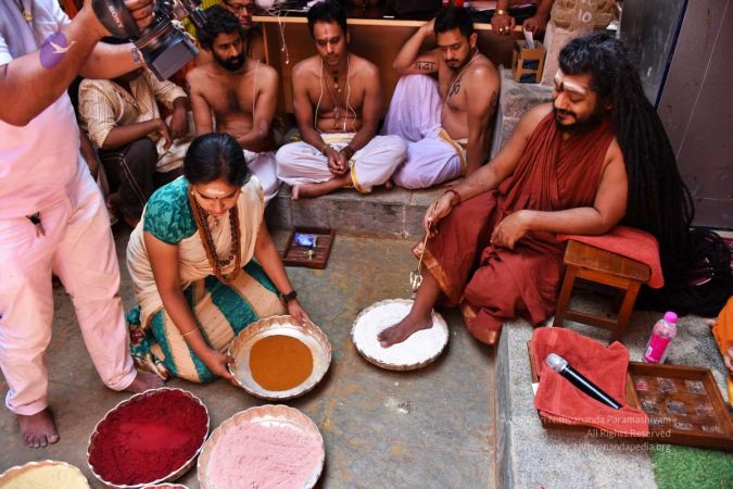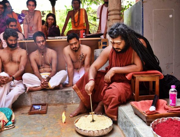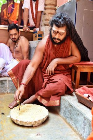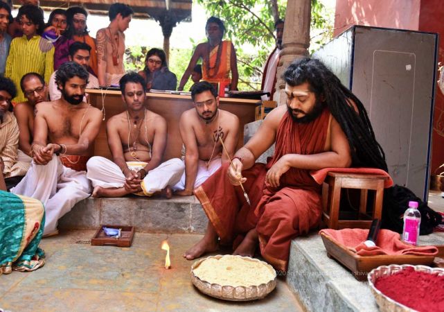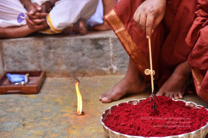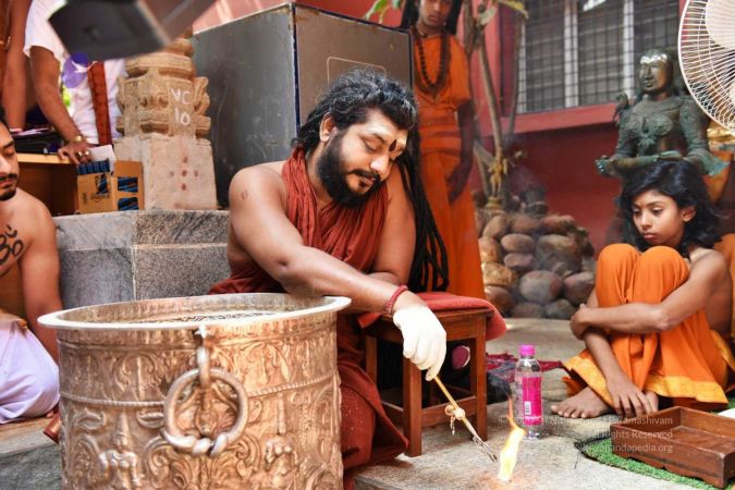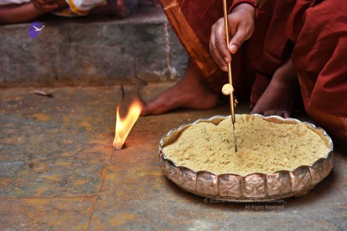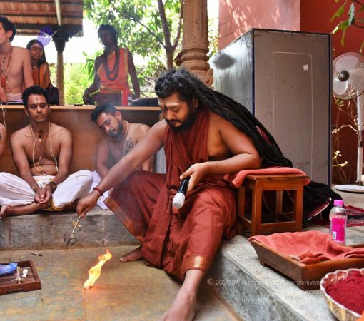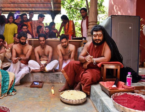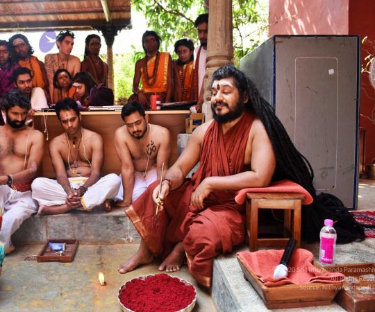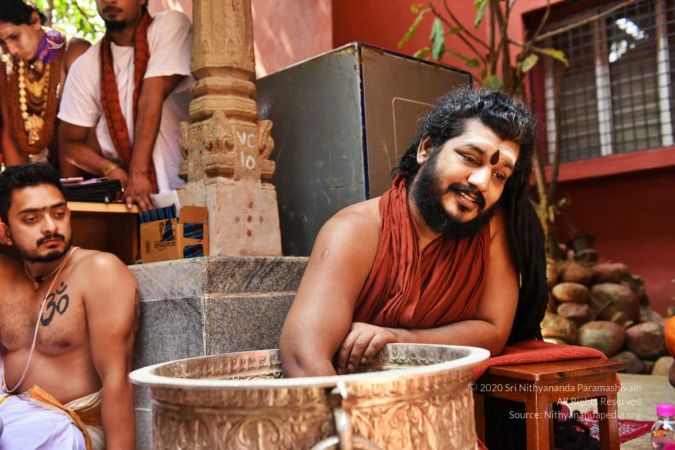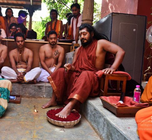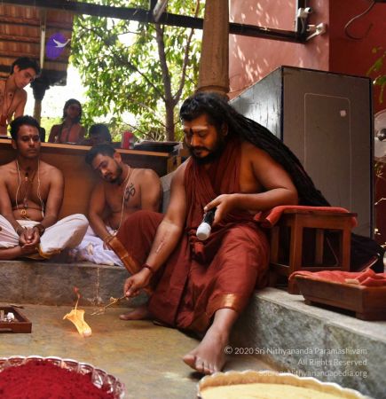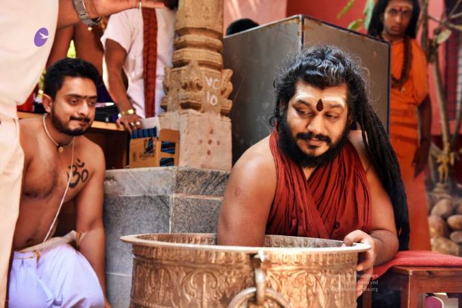 HDH Nithyananda Paramashivam conducting courtyard spiritual alchemy science process