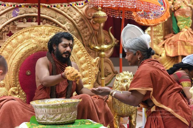 Hundreds of lorries, lorries, lorries. Each department is describing, how they are preparing, but I tell you, all that put together, this 40,000 square feet Nithyananda Sabha. The whole Sangha working, from your welcome badge to the welcome brochure, souvenirs, everything, is only less than 1% of the work. 99% of the work is making this Spiritual Alchemy Products. Because I do not have decision fatigue, I do it so casually, you do not understand what is being done. Because you guys tick tock, think, act, so much…..the thought pornography, you guys think whatever you are doing is the 99.99% work. “What Swamiji, is sitting and playing with the Vibhuti and kumkum little and puts the whole thing and says, “Ah, come on now, pack it.” Understand. Whatever you do without any of that, I can make the whole Sadāshivoham 2016 success. Just with this Spiritual Alchemy Products, without any other help, support, I can make this whole program, whole Sadashivoham 2016 success. All the things you guys are doing, the Balasants growing plants in the brass pots, the kitchen getting the groceries, rice and dal alone, something for like a 3 1/2 - 4 crores, and Sacred Arts, winding up and buying shops after shops and the stone, the whole Mulbaagal is stalled, nobody else gets any supply. All this are just, you guys are making a statement to the Participants – we care for you, that’s all. Whatever you do is only the way the Sangha is making a statement to the participants, who are arriving - ‘we care for you.’ Nothing more than that. Without any of this, I can make the Sadashivoham 2016 successful, just by the Spiritual Alchemy Products, because that is what is the 99.99% of the work.