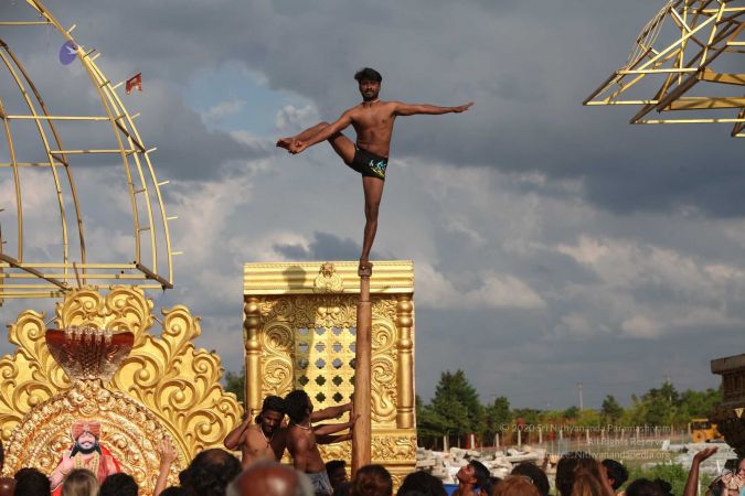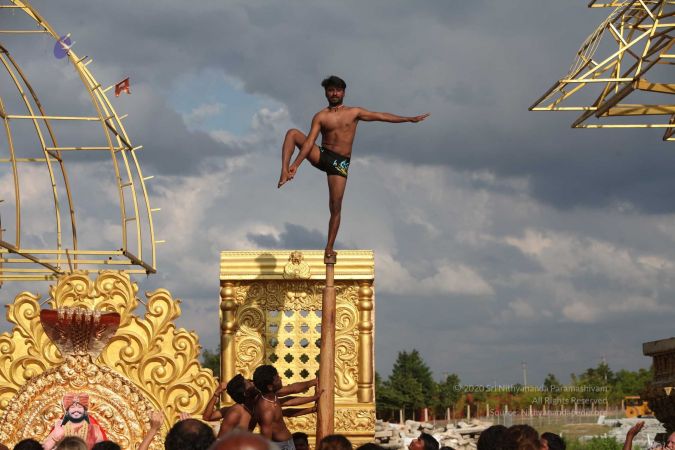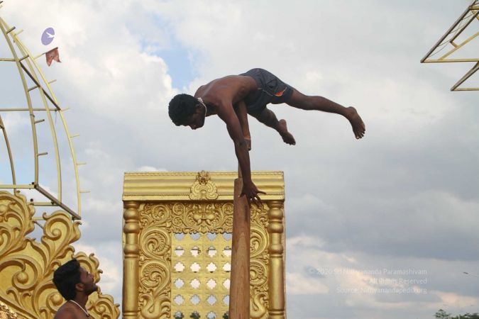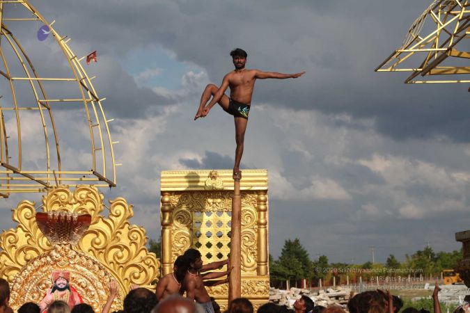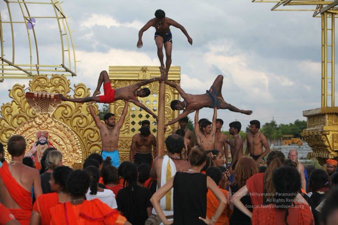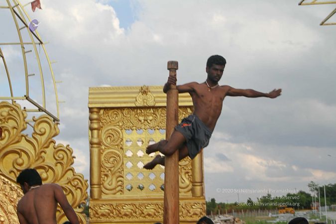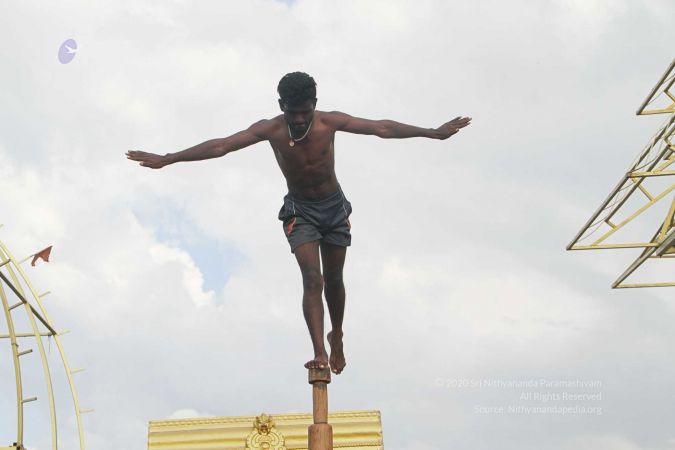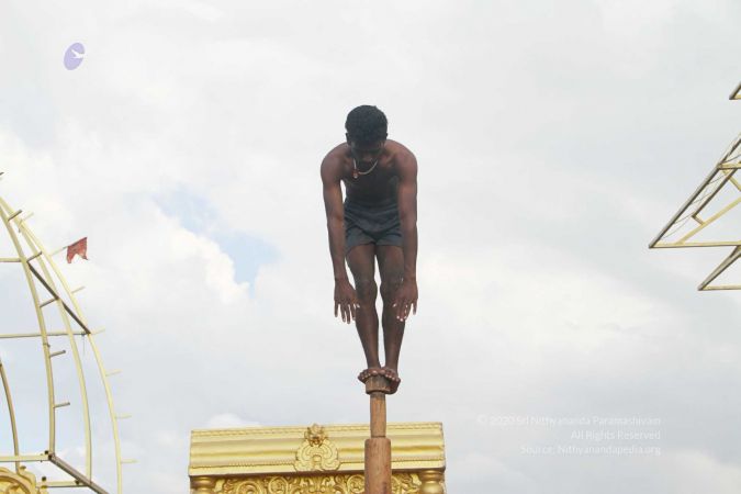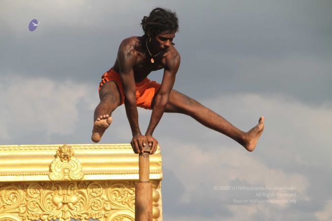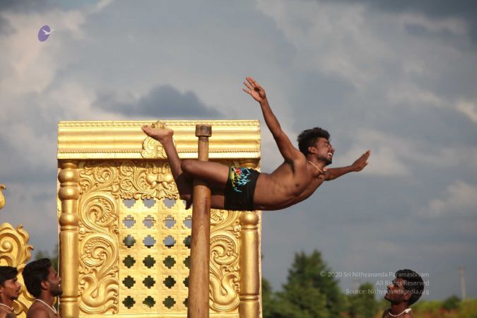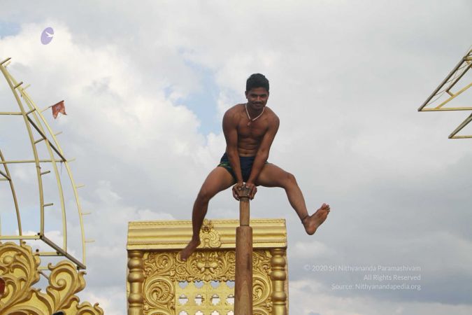True to his integrity to reviving all dimensions of Sanatana Hindu Dharma back to their original glory, HDH Paramahamsa Nithyananda has taken this ancient traditional yogic science of mallakhambha to the whole world, beyond the boundaries of gender, age, culture, nationality, socio-economic backgrounds, or even physical abilities.