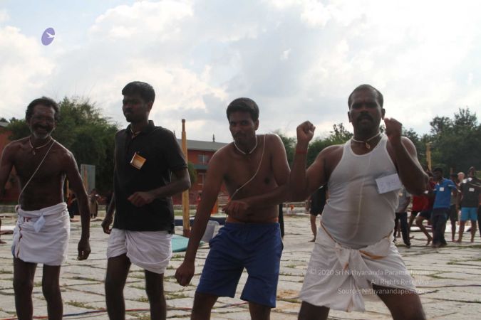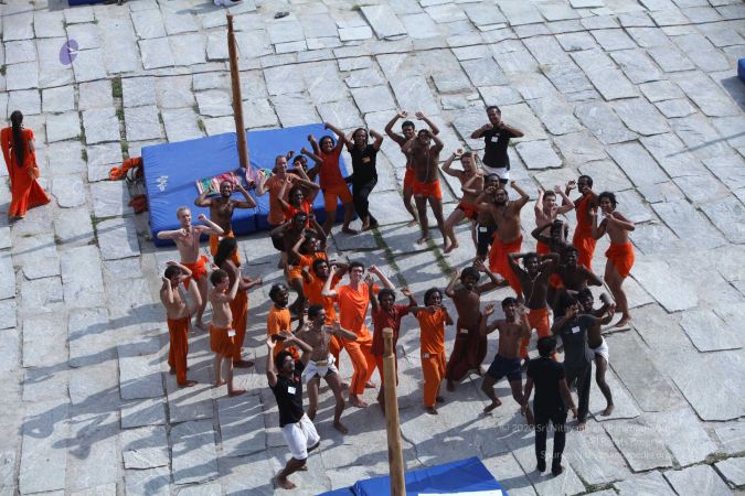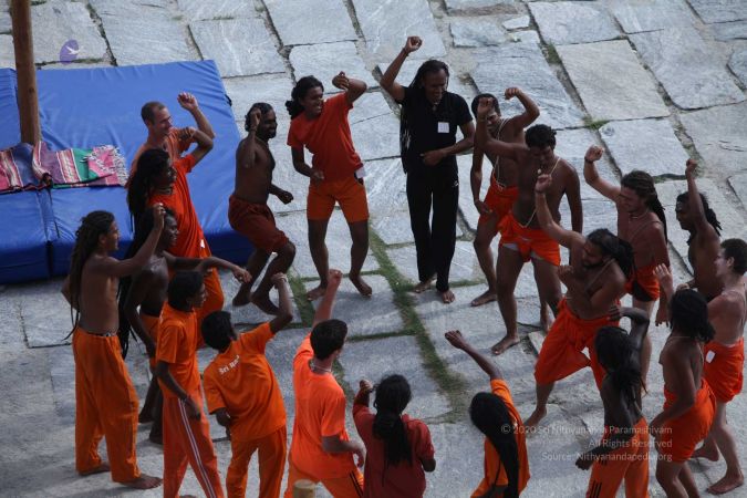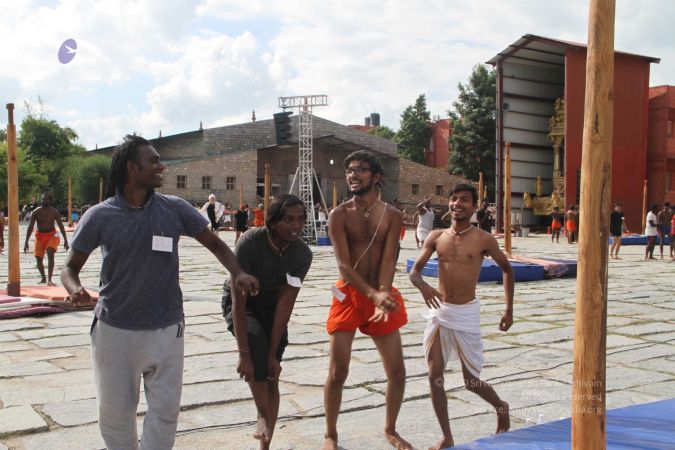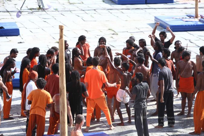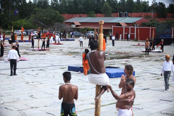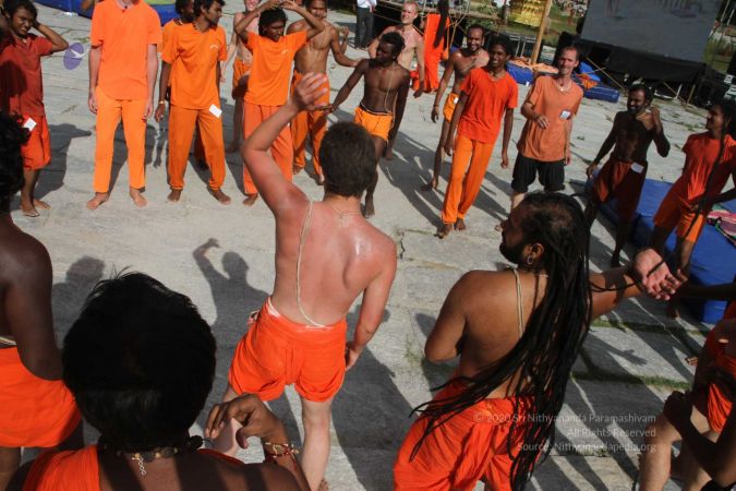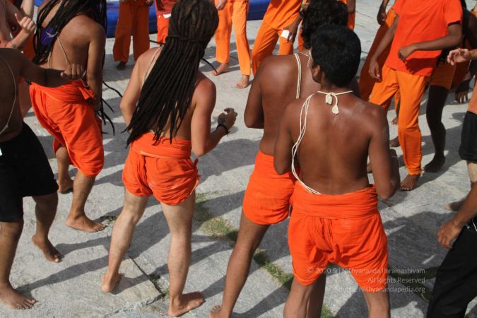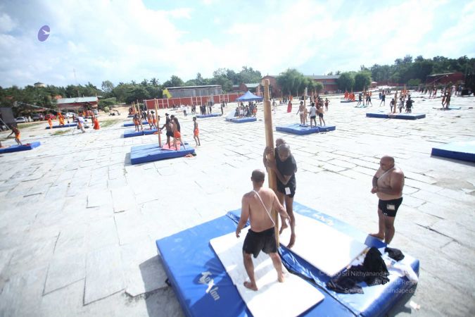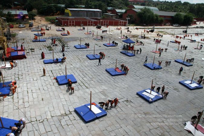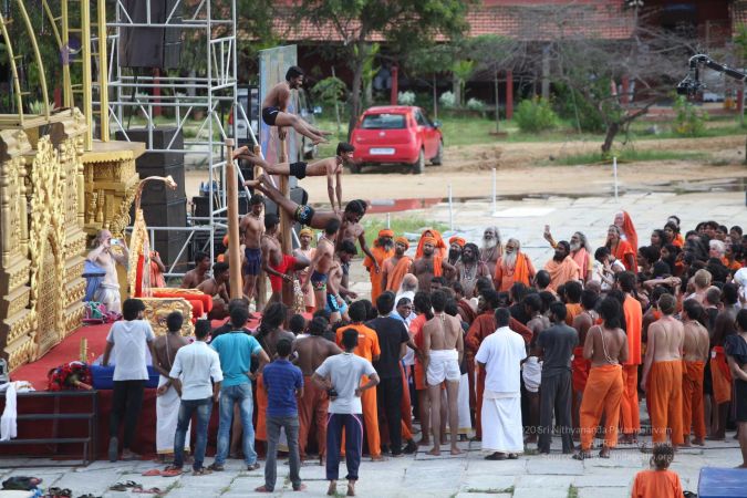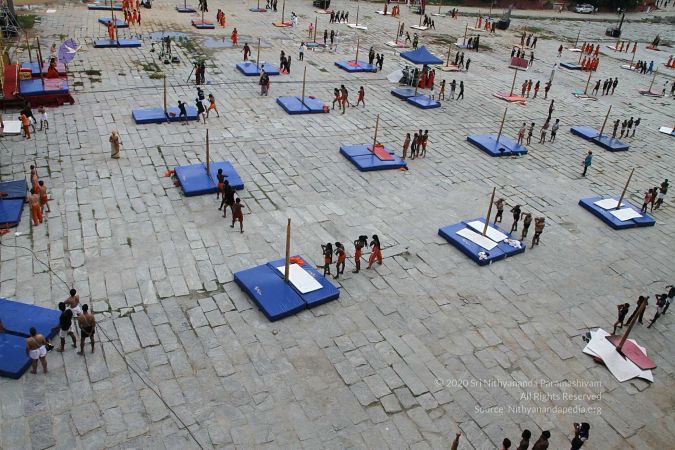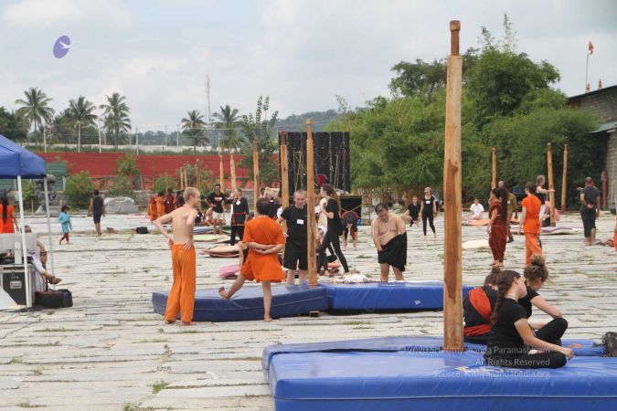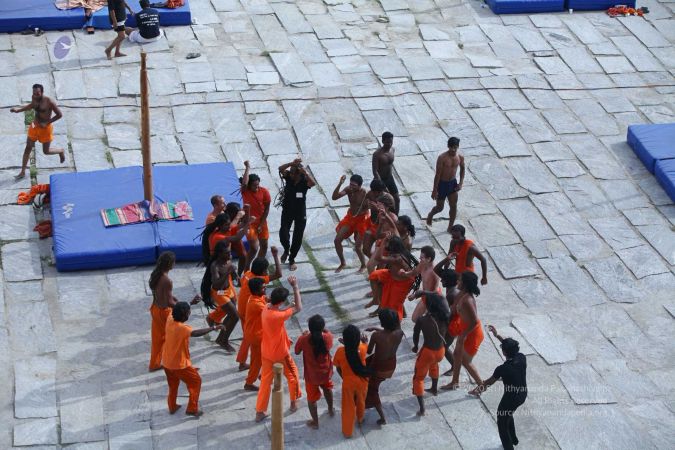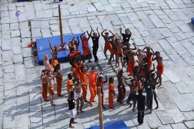 There were 263 initiated delegates from 44 countries aged from 16 to 74, including men and women, successfully completed the mallakhamba class at the Nithyananda Peetham, Bengaluru Aadheenam