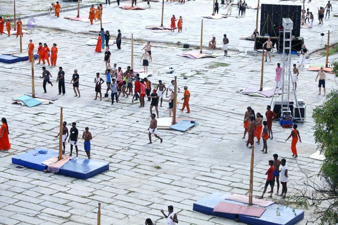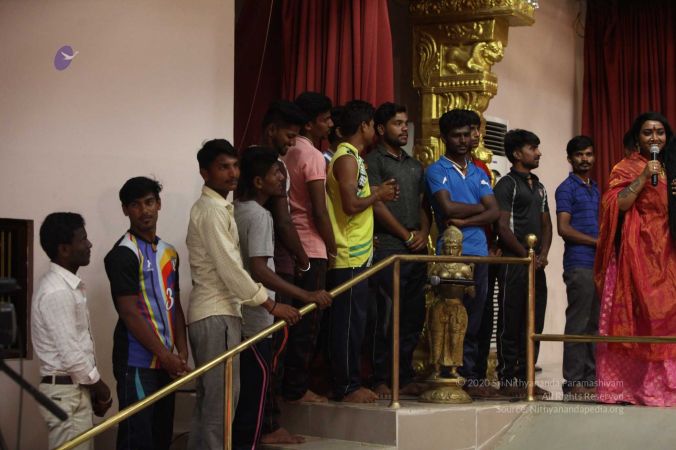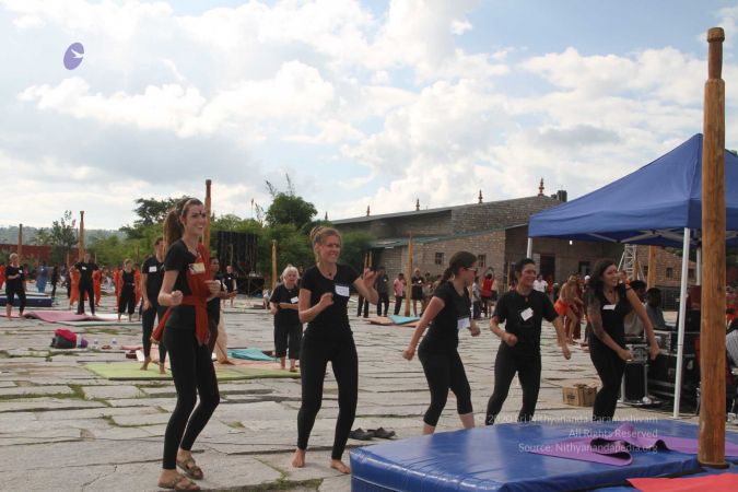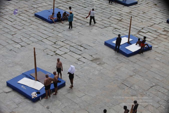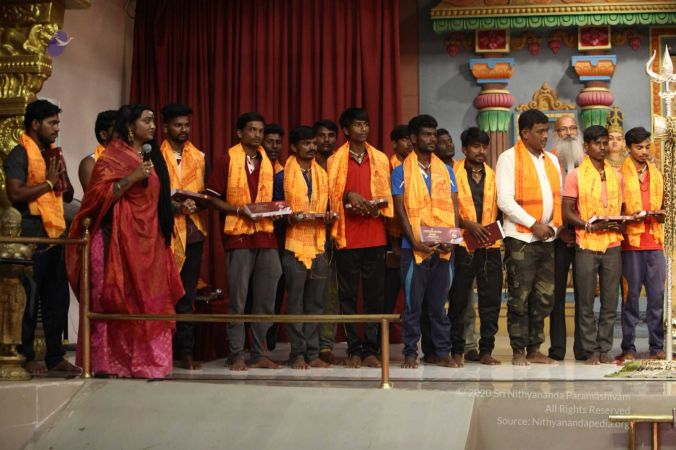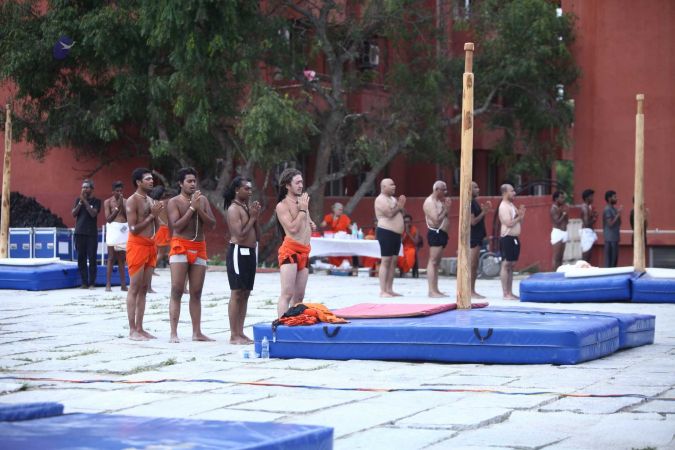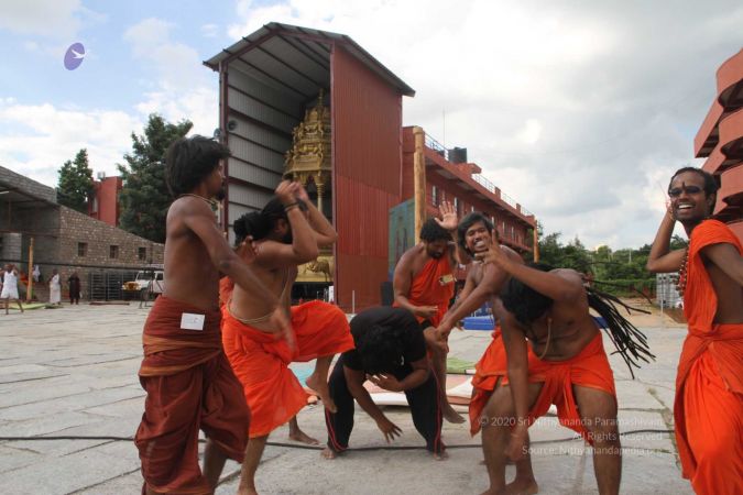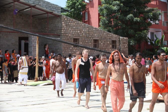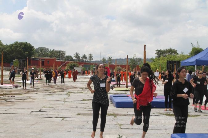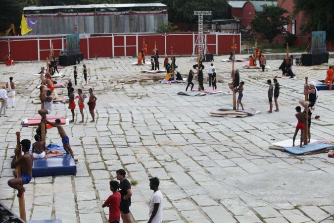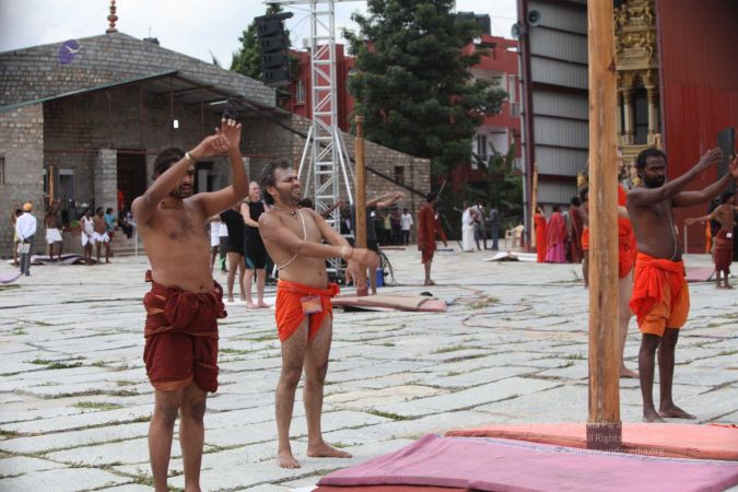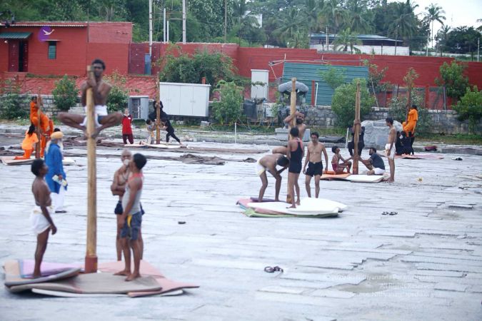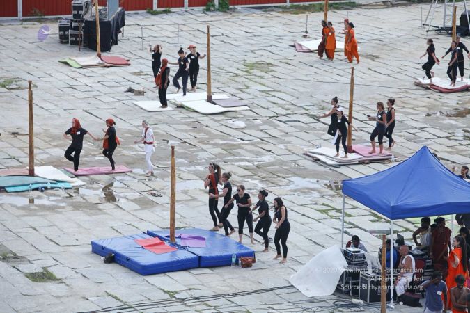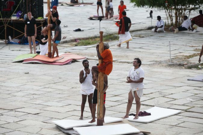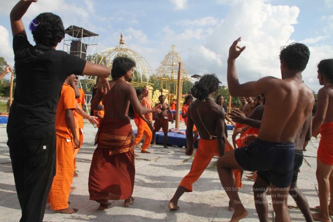 There were 263 initiated delegates from 44 countries aged from 16 to 74, including men and women, successfully completed the mallakhamba class at the Nithyananda Peetham, Bengaluru Aadheenam