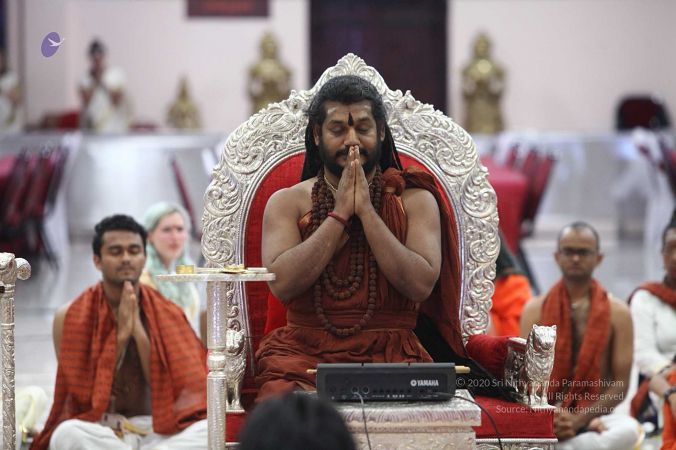 HDH Nithyanand Paramasivam honoring delegates and blessing at Adi Kailaasa, Bengaluru Aadheenam