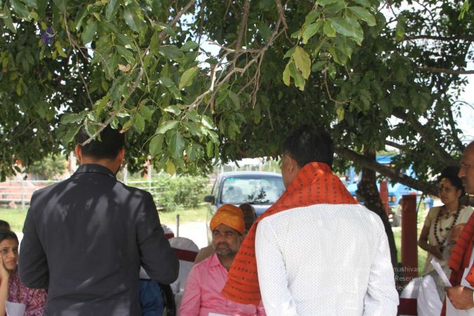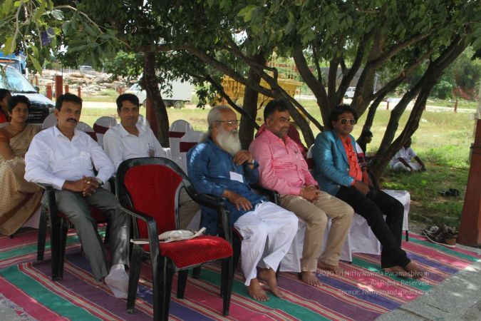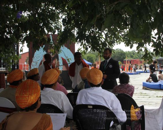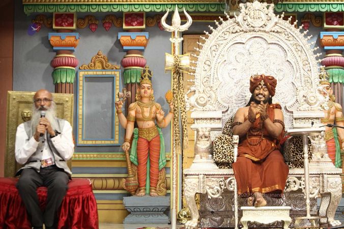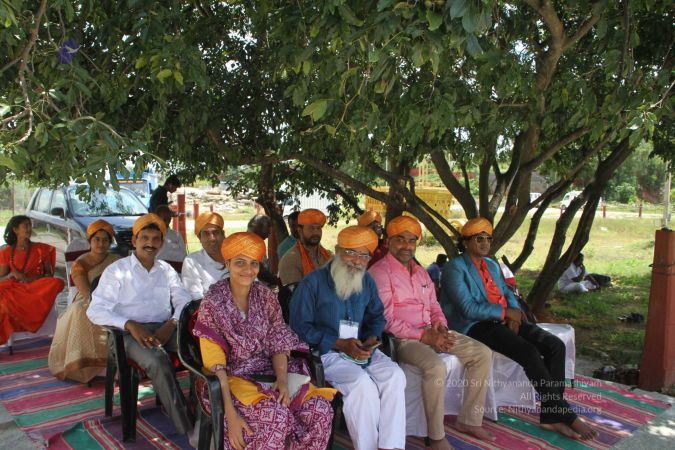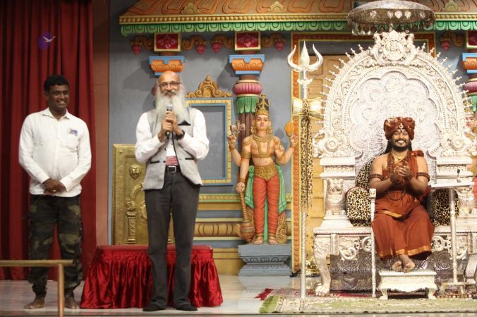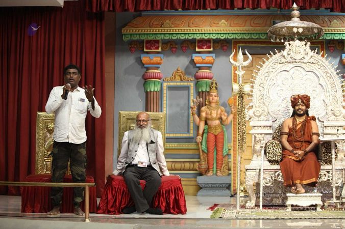 Swapnil Dangarikar, the official adjudicator from Guinness World Records along with other delegates attending the satsang at Adi Kailaasa Bidadi