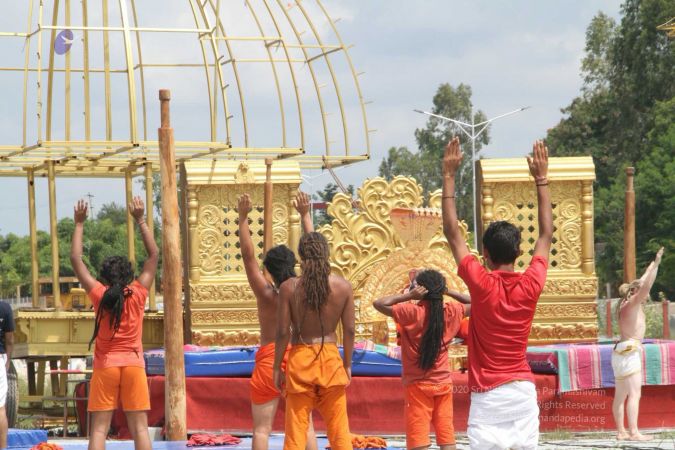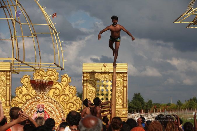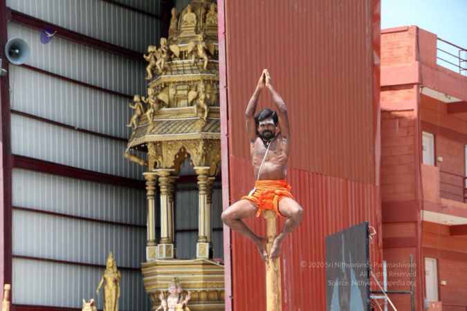Praying HDH Nithyananda Paramashivam and invoking his blessings for demonstration of shivasthambha or pole yoga