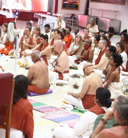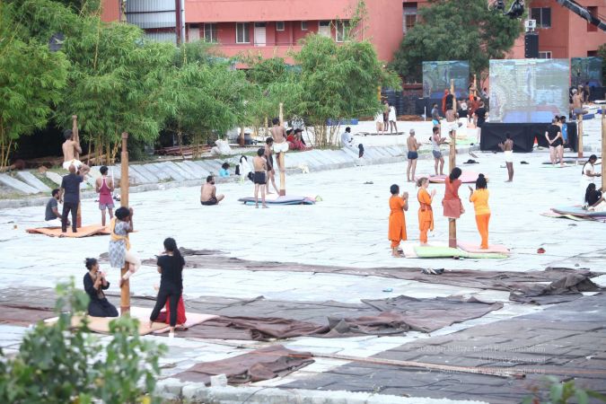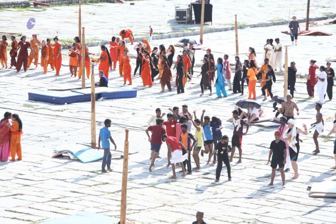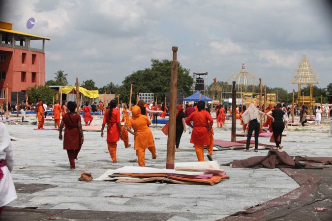 Balasants, sannyasis, adheenavaasis and delegates ready for yoga asanas demonstration event