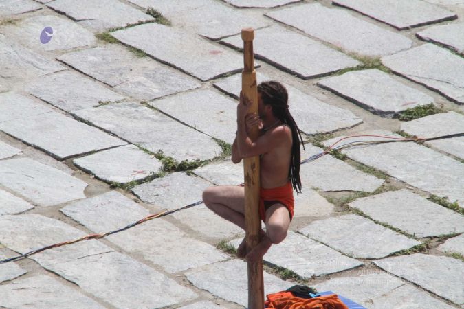 Shivasthamba yoga also known as mallakhamba, or pole yoga, is a traditional Indian sport in which yogis performs yogic postures