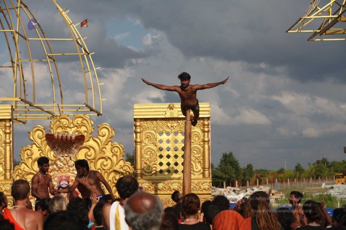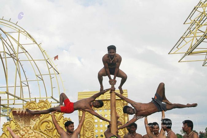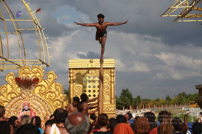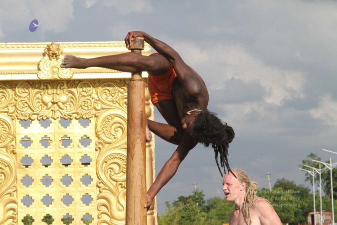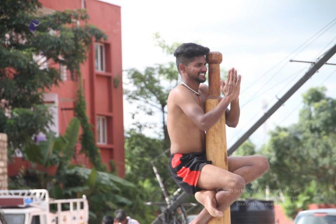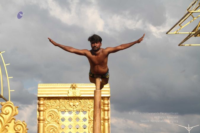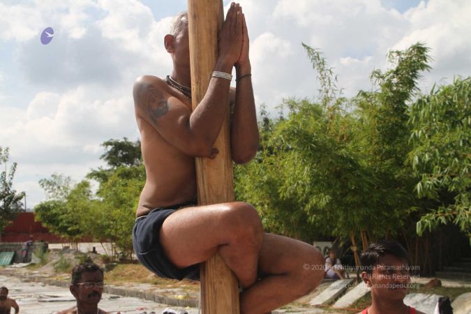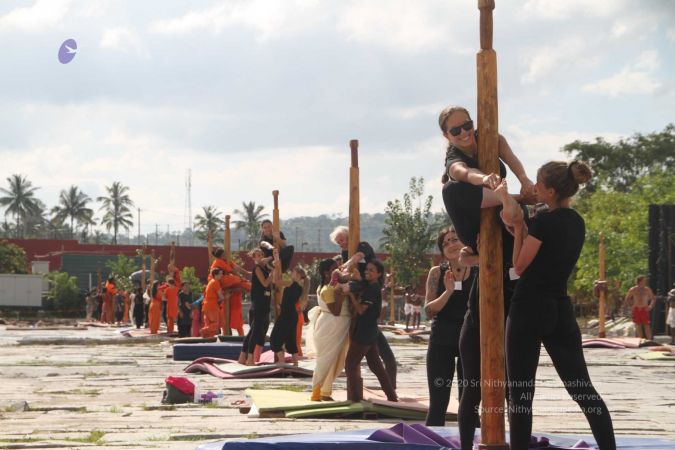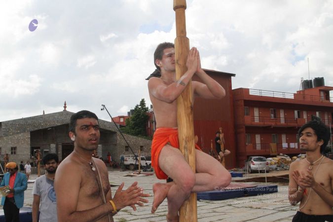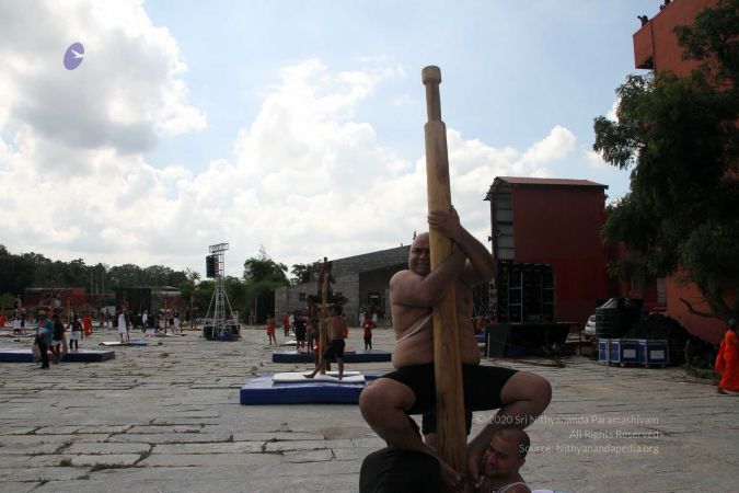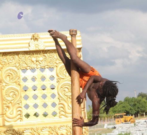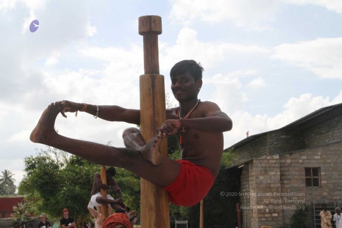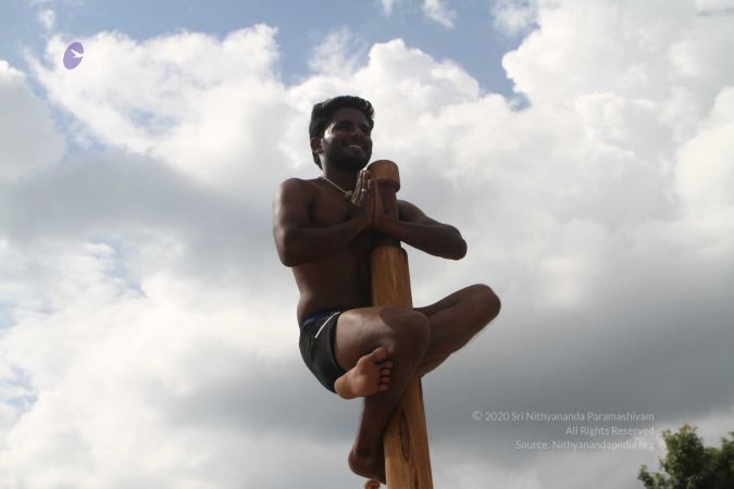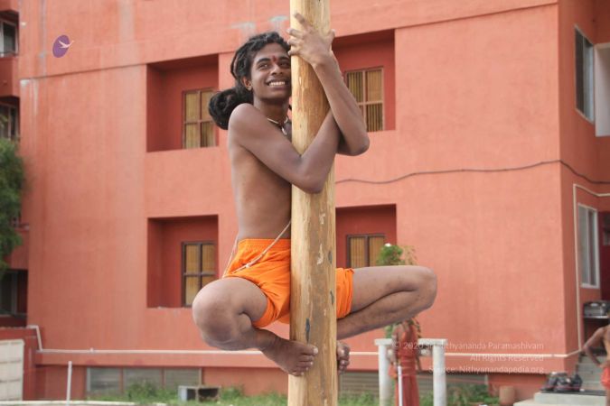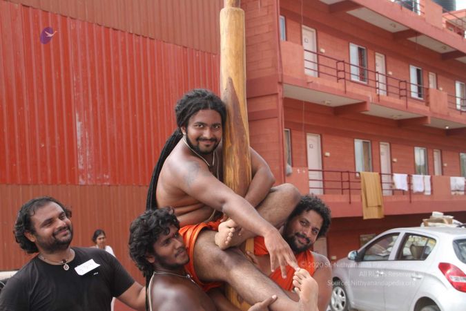 Mallakhamba is effective in training the body, that it forms an integral part of yoga session led by living avatar HDH Nithyananda Paramashivam