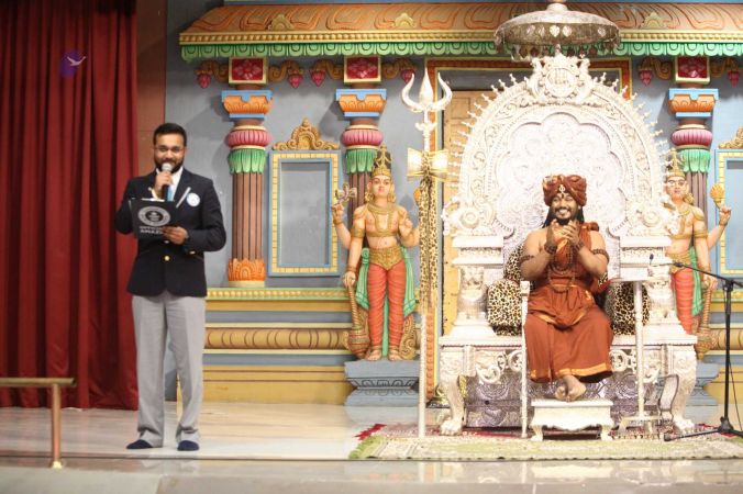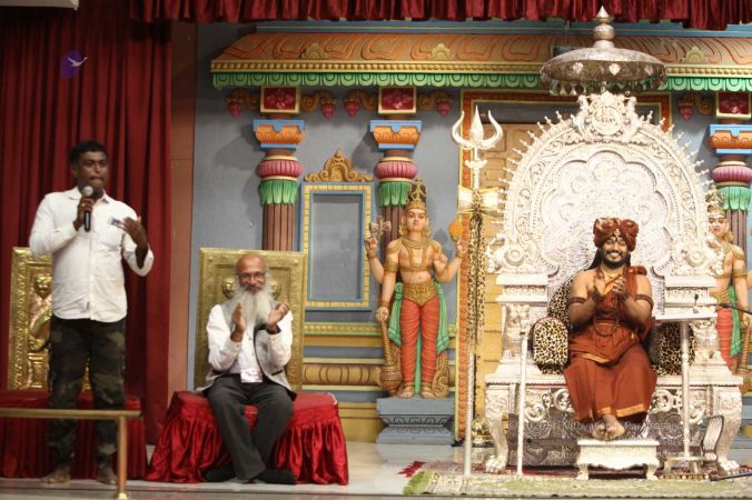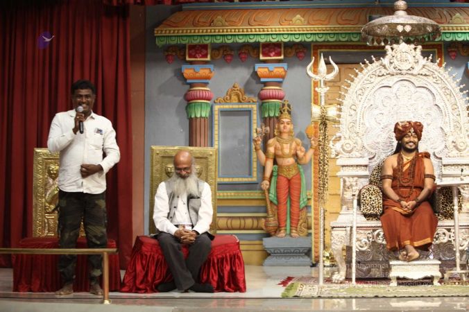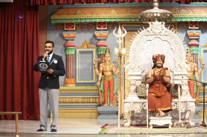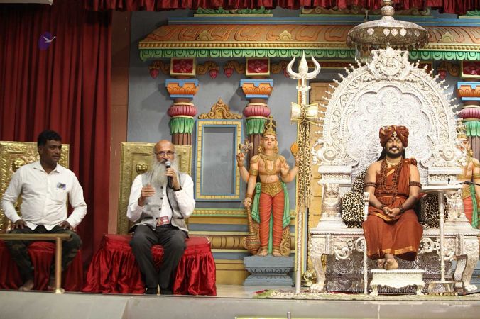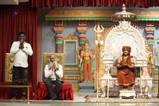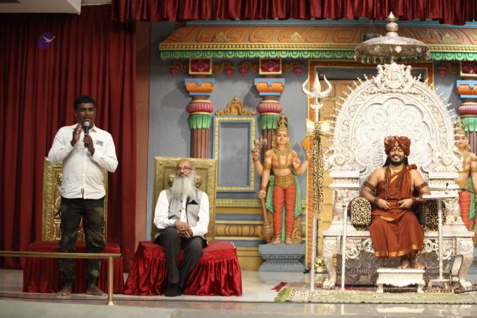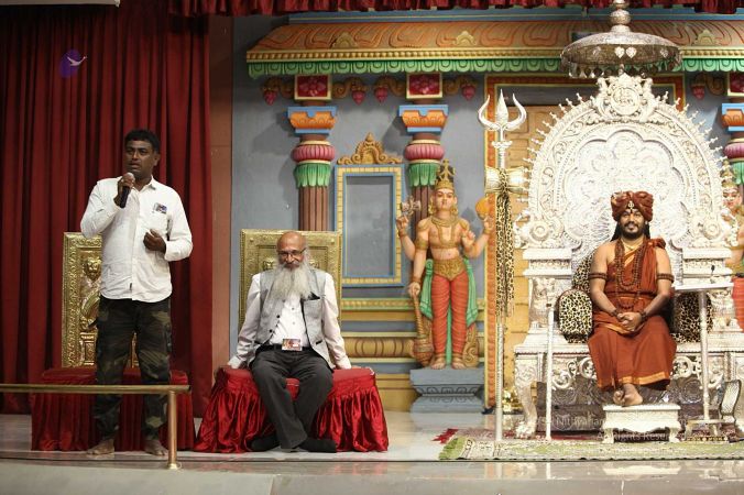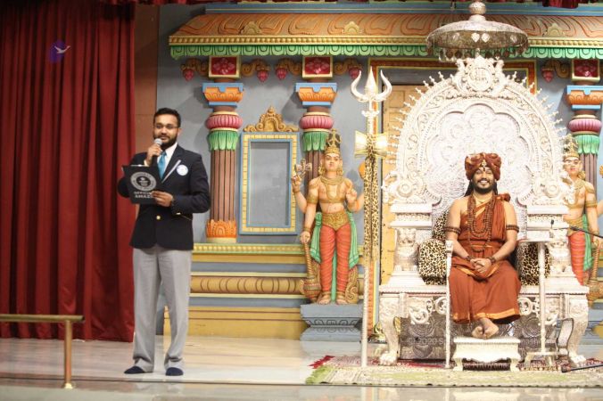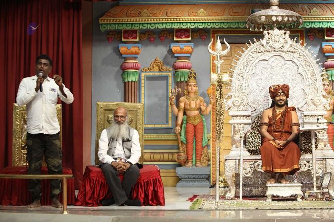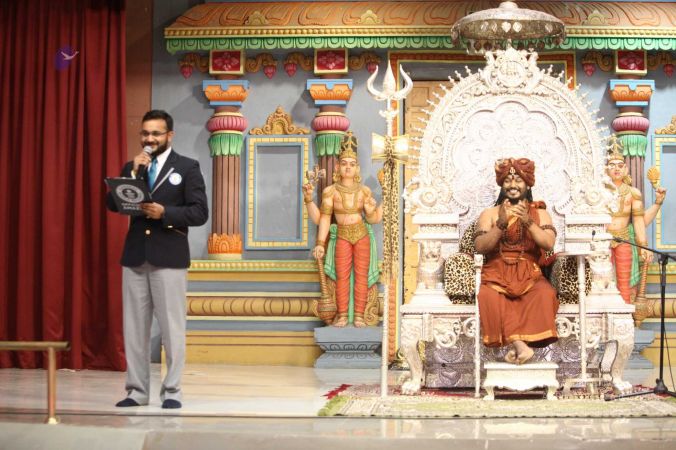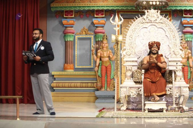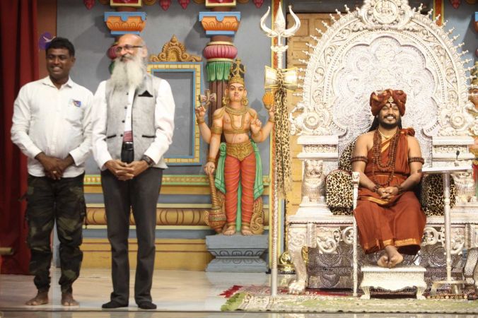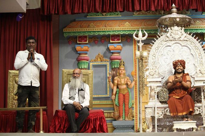 Swapnil Dangarikar, the official adjudicator from Guinness World Records along with other delegates attending the satsang at Adi Kailaasa, Bengaluru Aadheenam
