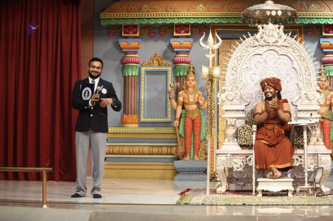 Swapnil Dangarikar on the dias to honor HDH Nithyananda Paramashivam for setting a guinness world record for the largest rope(mallakhamba) yoga lesson
