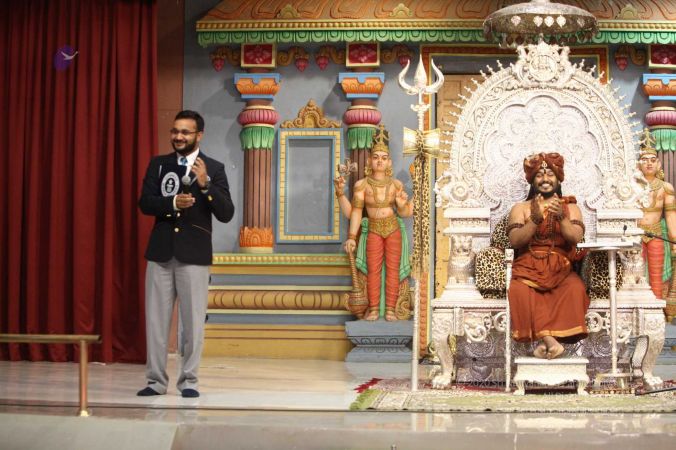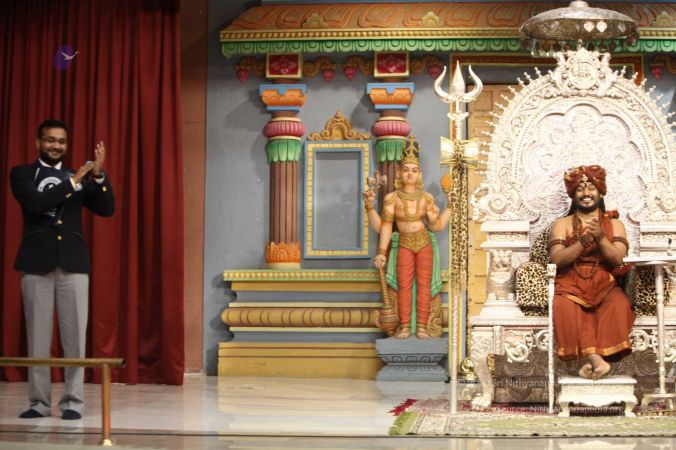 Swapnil Dangarikar on the dias to honor HDH Nithyananda Paramashivam for setting a guinness world record for the largest rope (mallakhamba) yoga lesson