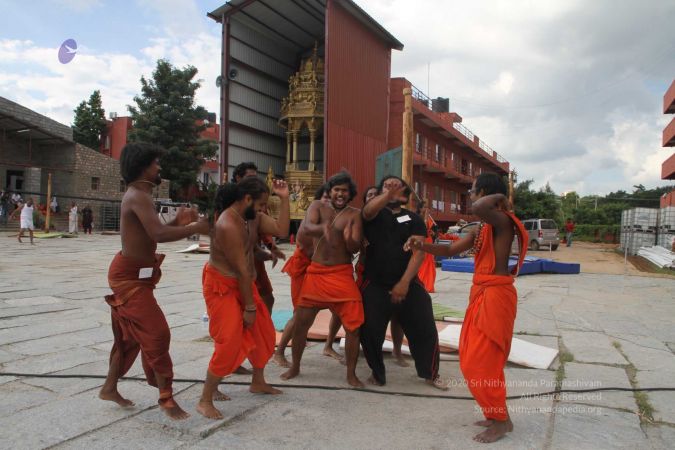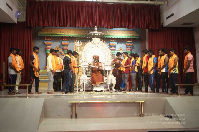 Sanatana Dharma is real. Hinduism is real. In an extraordinary display of the powers of yogic body and initiation by the Avatar to awaken the kundalini shakti or inner potential energy of every individual, 263 initiated disciples of His Divine Holiness Paramahamsa Nithyananda from 44 countries aged from 16 to 74, including men and women, successfully completed the mallakhamba class at the Nithyananda Peetham, Bengaluru Aadheenam.