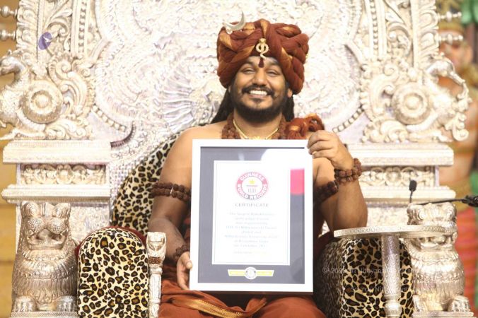 HDH Nithyananda Paramashivam was honored with the guinness world record for the most people performing mallakhamba yoga (commonly known as pole yoga)
