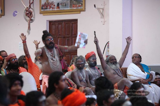 Balasants, sannyansis, adheenavasis and naga sadhus gathered at the rajya sabha for the satsang