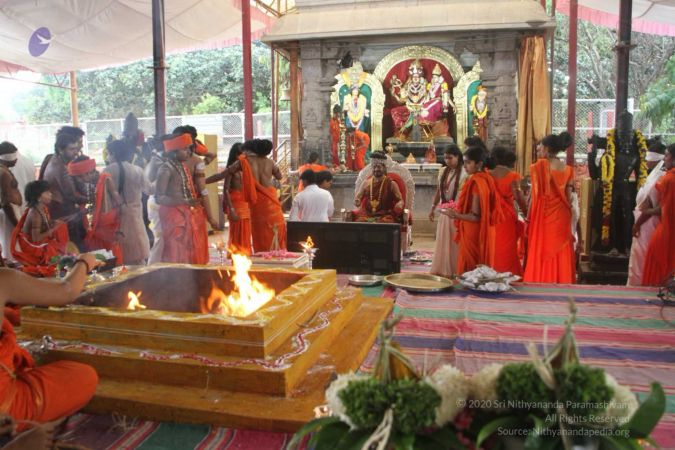 Personal Deities of HDH Nithyananda Paramashivam - aushadha process at Rajya Sabha, Adi Kailaasa, Bengaluru Aadheenam