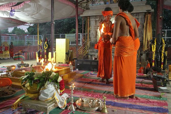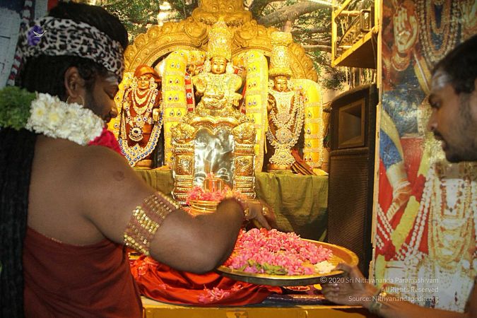 Personal deities of HDH Nithyananda Paramashivam - aushadha process at Rajya Sabha, Adi Kailaasa, Bengaluru Aadheenam